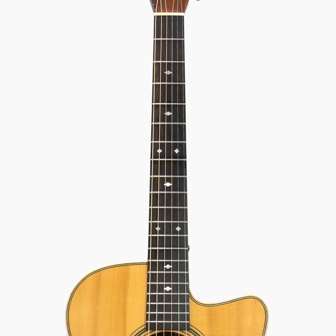 コンディションですが製作から20年以上経過しておりますのでトップの日焼けや使用感は相応にあり、打痕や擦り傷などございますが、楽器としての状態やクオリティは申し分なく、セッティングもビシッと決まったとても良い個体です。新品とは比べ物にならないぐらいにオープンな鳴りに育っており、とても鳴らしやすく音量感も十分です。弦高もしっかりセットアップ済みで、ネックはストレート、12F上で6弦側2.4mm、1弦側1.7mmのセッティング。フレットもまだ十分残っており、トラスロッドも正常に作動します。付属のケースが非純正のギグバッグとなっておりますので、通常よりお安い販売価格とさせて頂きました。