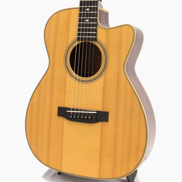 トップ材は稀少なジャーマンスプルース単板、バック材はインディアンローズウッド単板という本格スペック。