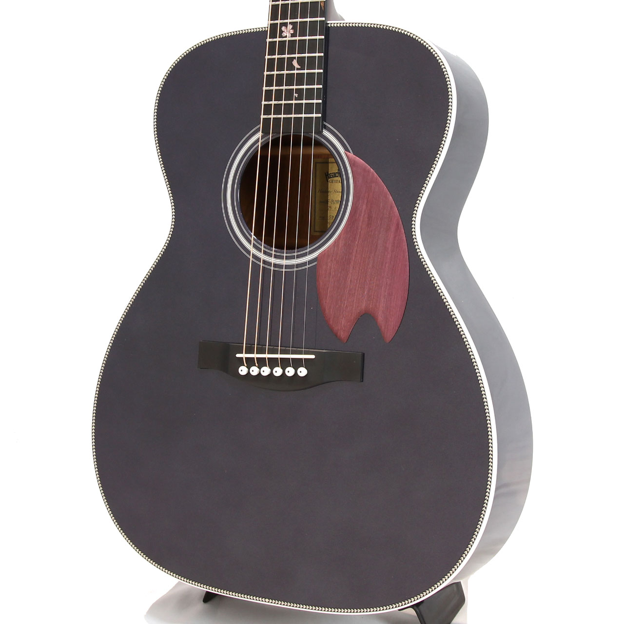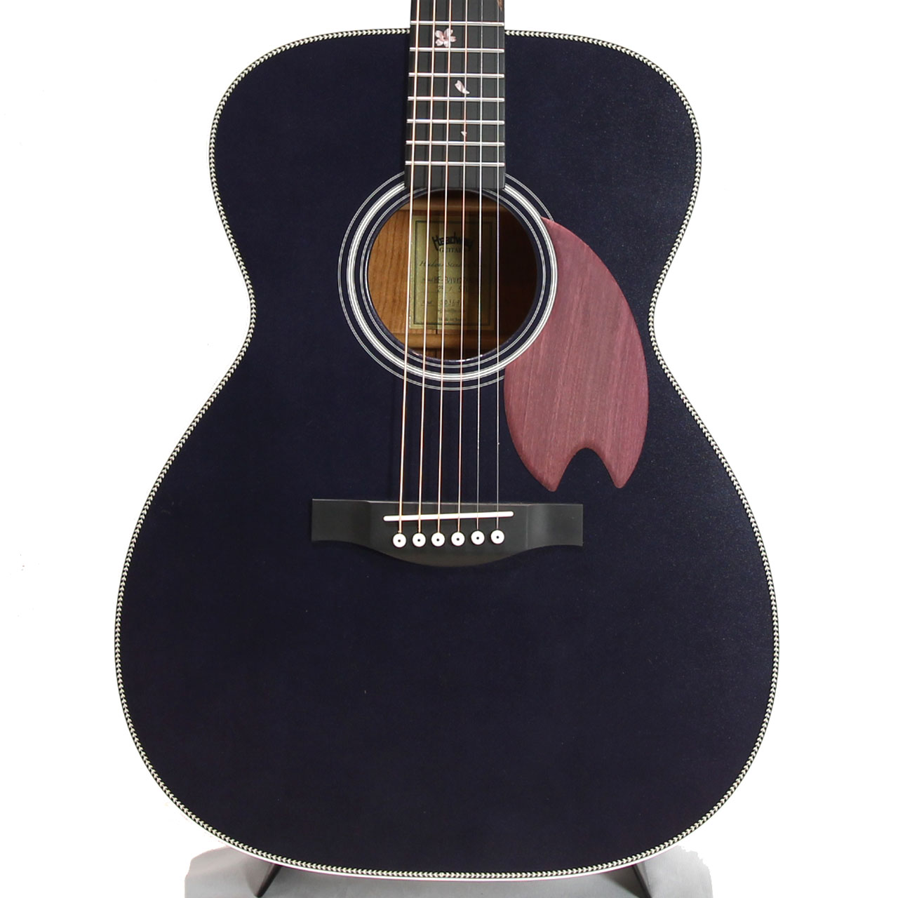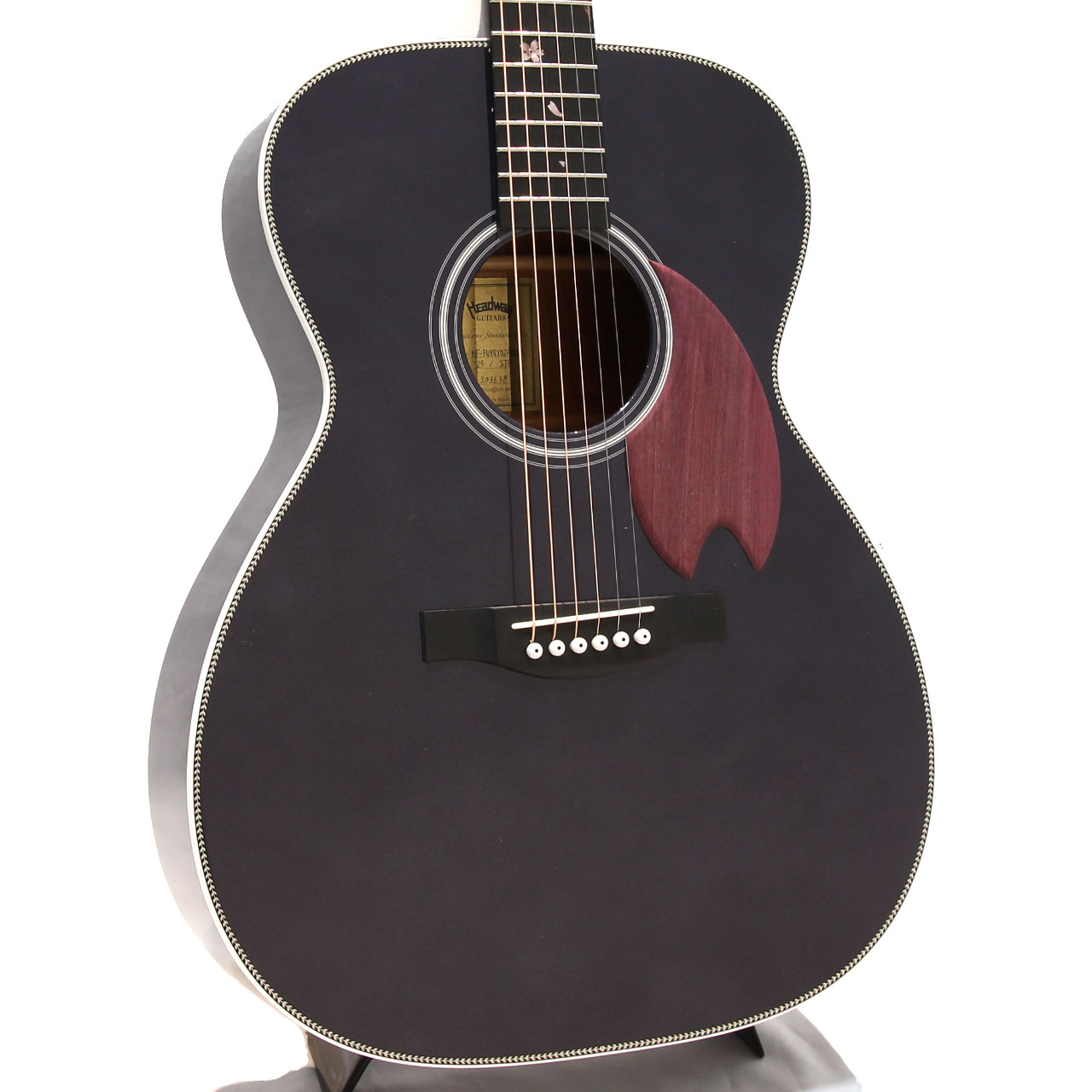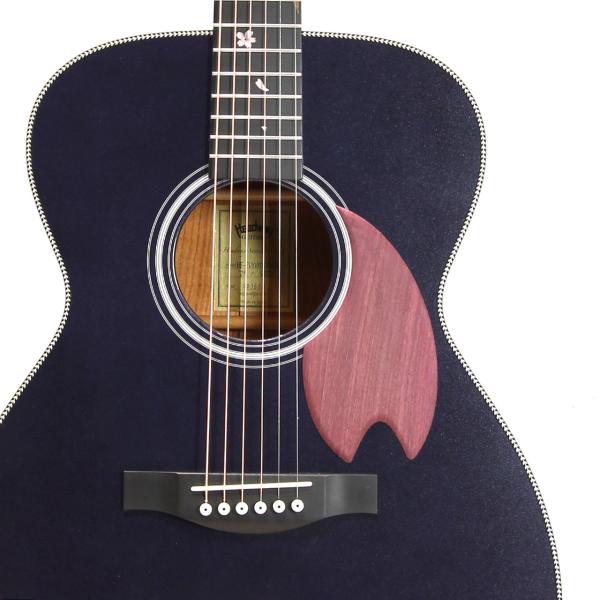 桜ギターを象徴するパープルハート材で作られた桜型のピックガード。最初に作られた一本から変わらない、Headwayの桜ギターである証です。
