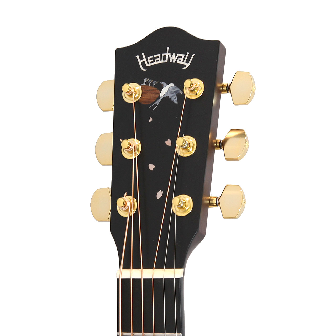 ヘッドトップには日本人にとってなじみの深いツバメをデザインのモチーフに選びました。Headwayともゆかりのある鳥であり、マスタービルダーの故・百瀬恭夫は毎年工房にやってくるツバメを楽しみにしていました。師への想いと、日本の奥ゆかしい風景に焦点を当てたデザインにより、ギター全体を通してストーリーを感じさせる一本です。