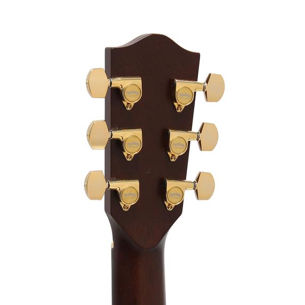 Headwayマスタービルダーの百瀬恭夫が1934年製のビンテージギターのブレーシングを研究し、独自に発展させたブレーシングを継承。Xのクロス位置がサウンドホールに近いセミフォワードシフトで新品時より低音の反応がよく、ボリュームのある鳴りを持ちます。フォワードシフトよりも5mmほどブリッジ寄りになっていることにより、トップ板の安定性も考慮された設計が行われています。