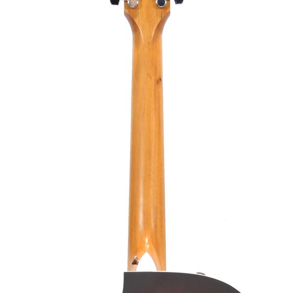 外観はオールサテンフィニッシュで統一され、サンバーストのカラーリングがシックでクールな風合いを醸し出しています。ナット幅もナローネックとなる42.8mmに変更されプレイアビリティが突き詰められております。