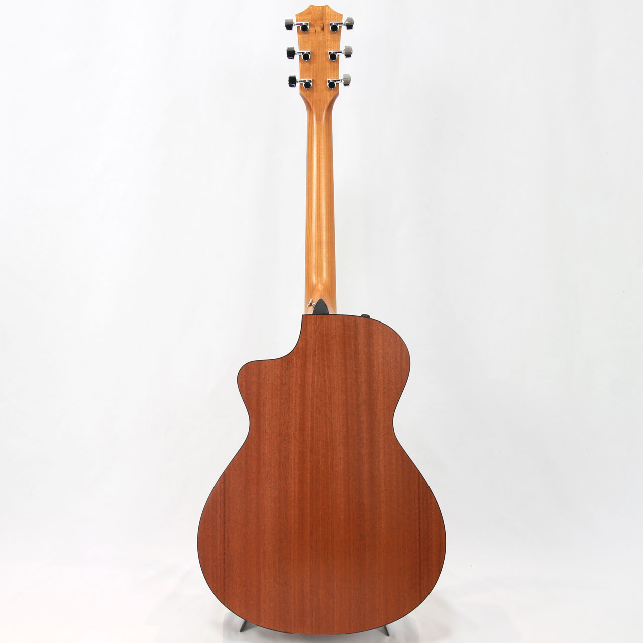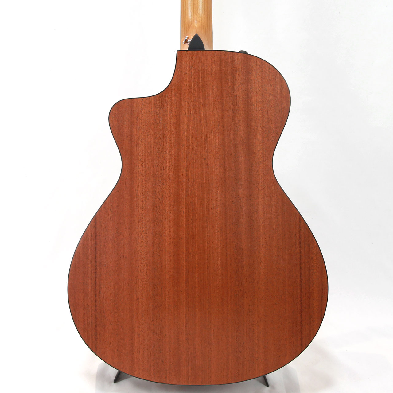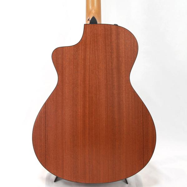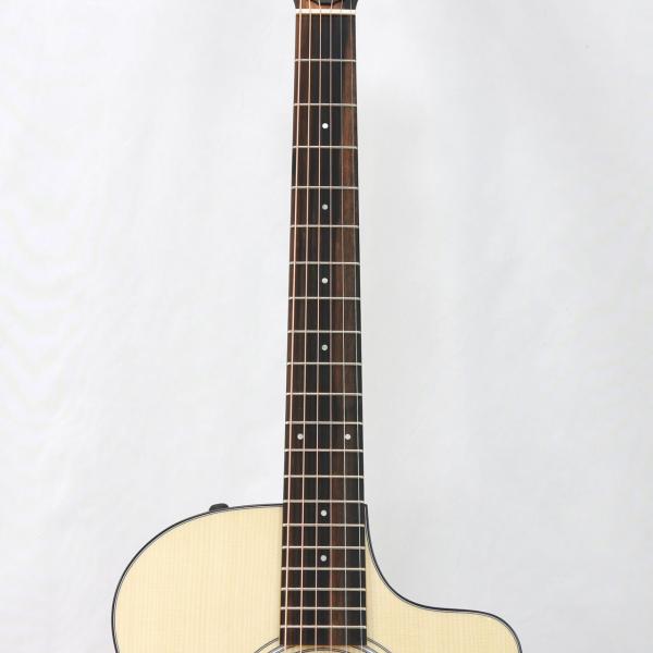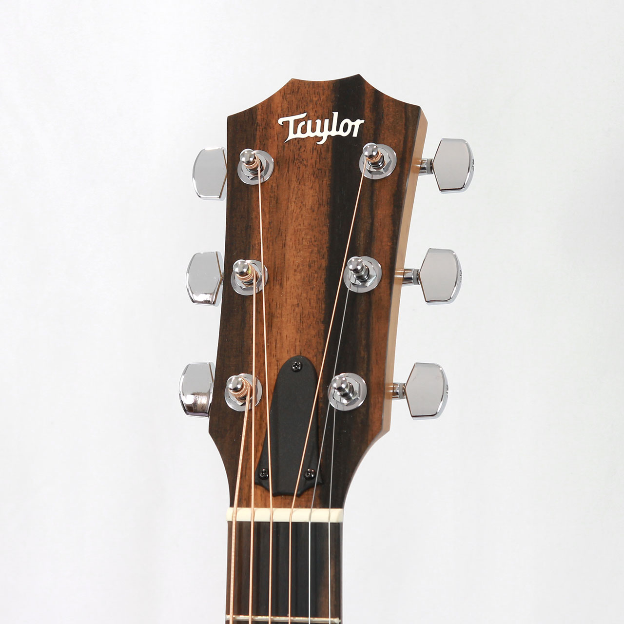 こちらはテイラーのエントリーモデルと呼べる100番台に新しく追加された、小振りなグランド・コンサートボディが採用された112ce-S。114ce-Sに比べてボディが小振りで抱えやすくスケールも短く押さえやすいので、お身体の小さな方や手の小さい方にも扱いやすいモデルとなります。