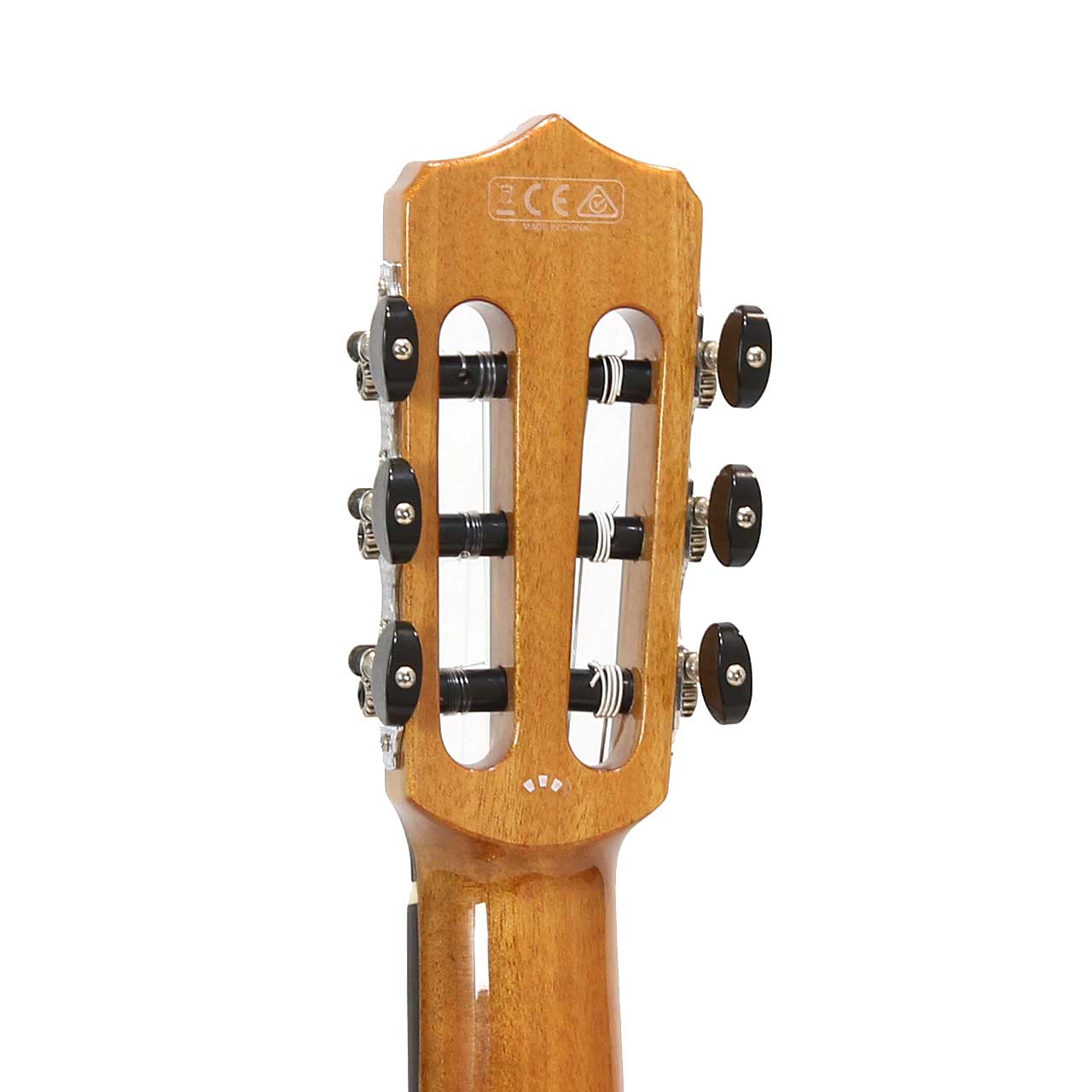 こちらはCordobaのフュージョン・ライン。細めの48mmナット幅に、アコースティックギターのように指板が16インチ・ラジアス加工された、エレキギターやアコースティックギターからの持ち替えに適したエレガットモデルとなります。