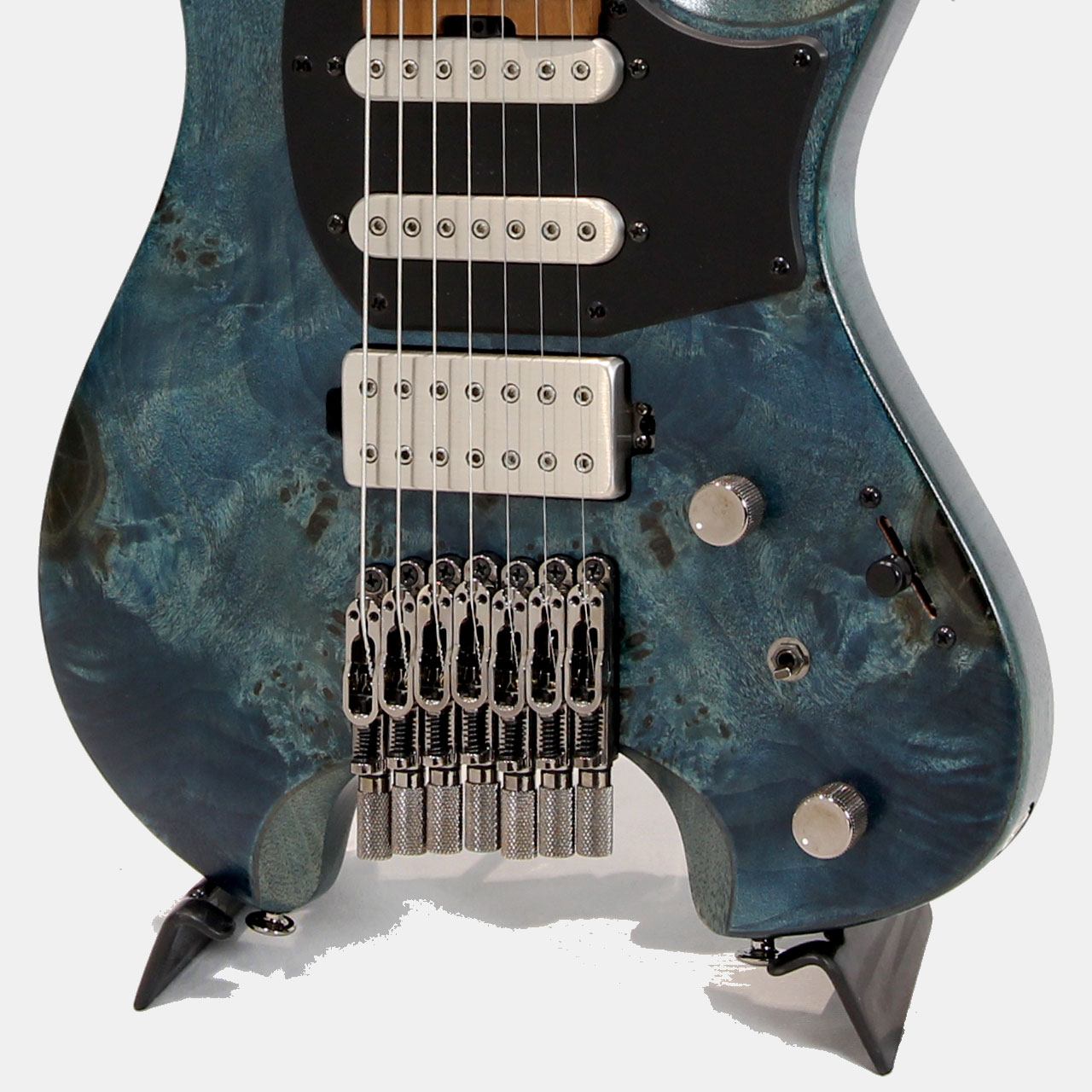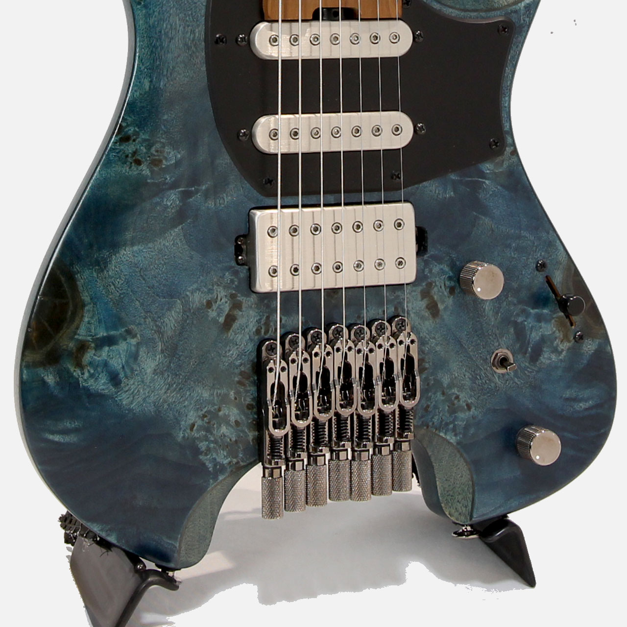 “Q”7 弦用のために設計されたシングルコイル・ピックアップ「R17」とハムバッカー・ピックアップ「Q58-7」を組み合わせた、S-S-H 配列。