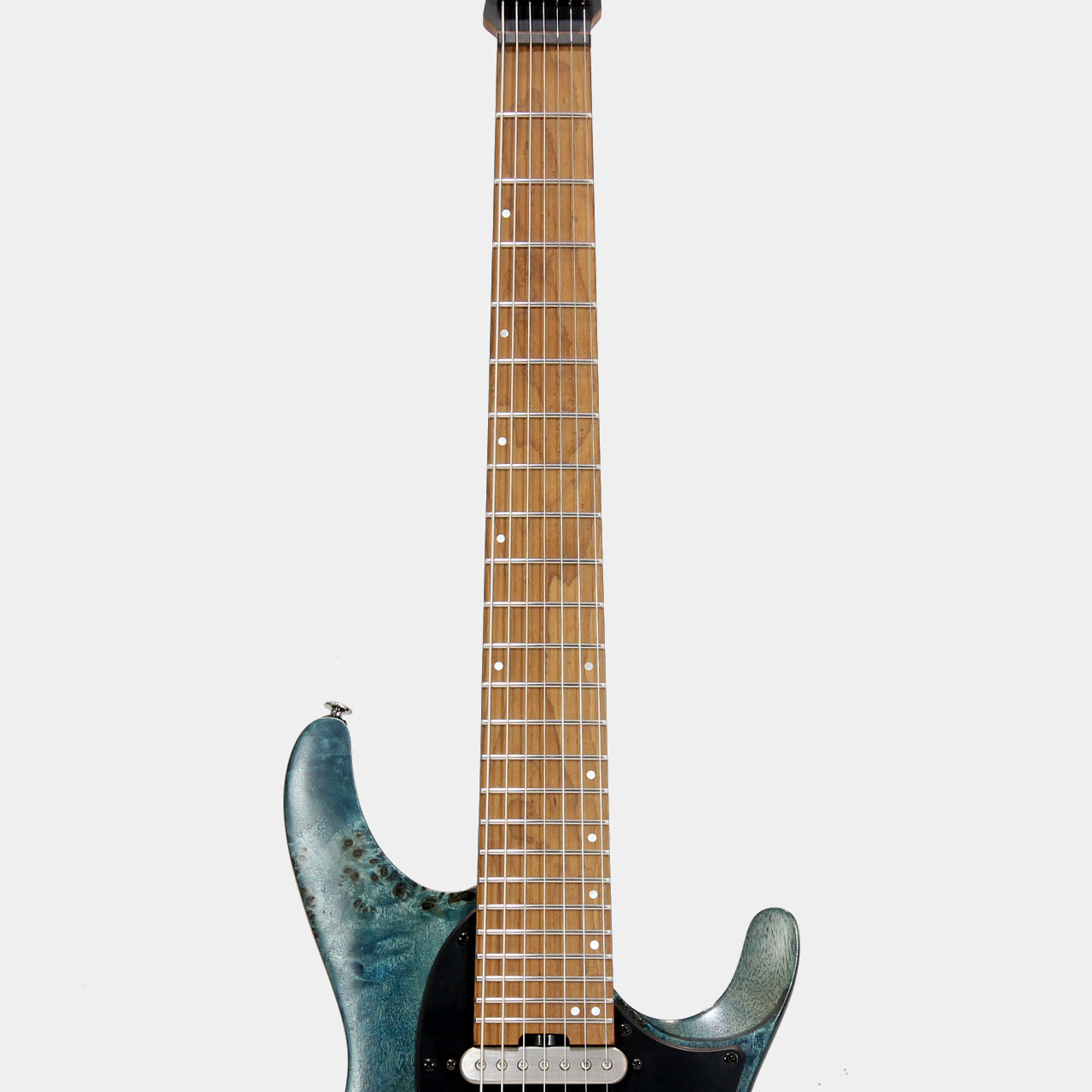 Fretboard:Roasted Birdseye Maple fretboard w/Mother of Pearl Step off set dot inlay & Luminescent side dot inlay