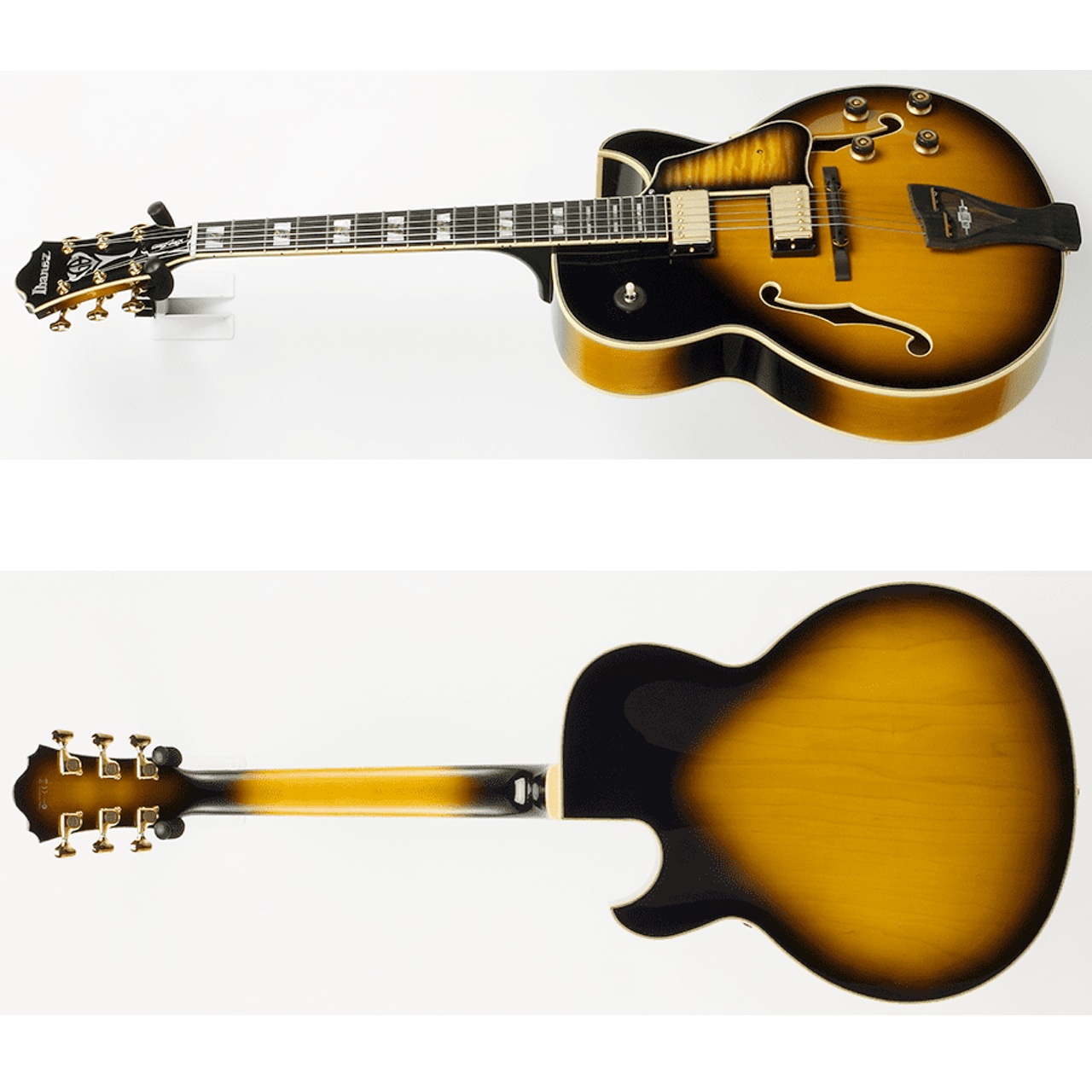 これまでよりシャープになったカッタウェィが印象的なルックス。メイドインジャパンのアイバニーズプレステージグレードならではの厳選の素材とつくりの良さ。アイバニーズ最高峰のフルアコとも言える仕上がりです。