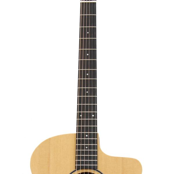 Baby Taylorシリーズと同じく指板上にネックジョイントのビスが打たれておりネックヒールを廃した形状が特徴的。よりハイポジションへアクセスしやすくなっています。やや短めのスケールを採用することで全体的な弾きやすさもありビギナーにおすすめできる敷居の低さを持ちつつも奥行きのある本格的なアコースティックサウンドを実現。ピックアップにはFishman Presys VTを装備。テイラーと言えば自社開発のES2やES-Bピックアップが有名ですがFishmanも負けず劣らずの相性でバランスの取れたエレアコサウンドをライン出力できます。