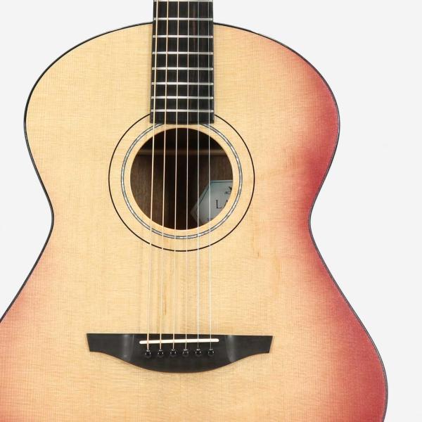 ヤイリオリジナルのRFシェイプをさらに一回り小さくしたような新シェイプは非常に抱えやすく、ビギナーでもストレスなく弾き始められます。ナット幅はヤイリお馴染みの42mm幅、こちらも握り込みやすく高い演奏性を実現しております。小振りながら明るく朗らかな鳴りを持っておりコード弾きでも厚みのある音色です。スケールも635mmと通常のアコースティックよりやや短め、弦の張りが緩く押さえやすくなると共に柔らかなアタック感で音を出してくれます。
