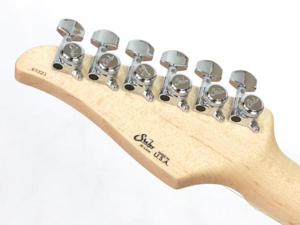 ピックガードにはJE-Line限定の特別仕様としてWhite Pearlをセレクト、ピックアップには多彩なトーンの組合せが得られるようシングルコイルピックアップには60年代のヴィンテージピックアップを再現した「V60」、リアピックアップにはSuhrの中でも高出力を誇る「SSH plus」を搭載。リアトーンがプッシュ/プッシュ式になっておりコイルタップも可能となったオールマイティな構成です。