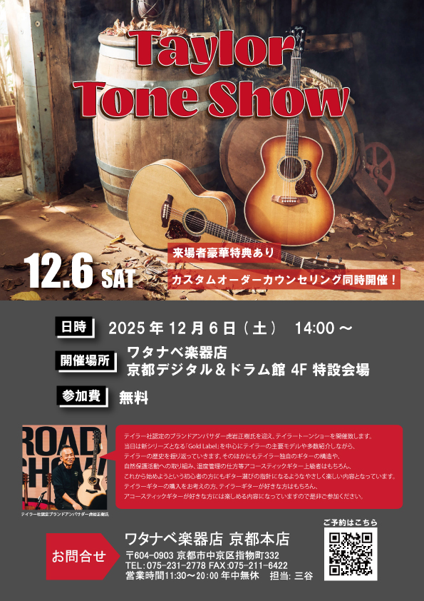 Taylor Guitars Toneshow 京都市中京区河原町通り夷川上る指物町326番地 ワタナベ楽器店 デジタル&ドラム館4F