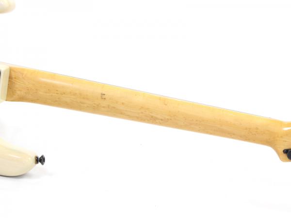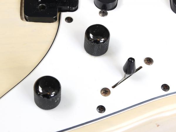全体的な使用感や細かなキズは多数あります。ネックジョイント部には薄い塗装のクラックが入っています。ボディ下のストラップピンの横にはギタースタンドでラッカーが溶けた跡があります。トラストロッドは緩める方には残り少しですが締める方には十分余裕があります。バックパネル欠品。フレットは7割程度残っています。全体的に日焼けの為塗装の色合いにムラがあります。