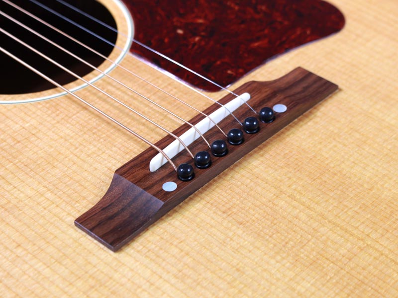 本器は1959年製のJ-50を綿密に復刻したカスタムモデル。ネックは丸みの強い59プロファイルで、ノーマルサドル仕様となっております。サーマリーエイジド加工を施した上質なシトカスプルースTOPに、ヴィンテージのように塗膜の薄くなった塗装を再現したシンフィニッシュを採用し、余分な倍音が削ぎ落とされたヴィンテージライクで熟れたサウンドを奏でます。