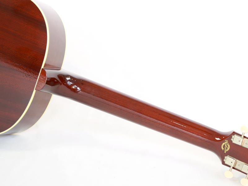スペックは、サーマリーエイジド・シトカスプルース材TOP、マホガニー材SIDE&BACK、マホガニー材ネック、ローズウッド材指板&ブリッジ、628mmスケール、ノーマルサドル、三連クルーソンペグと、1959年スタイルとなっております。