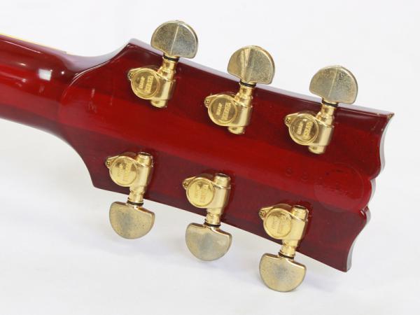 ペグやブリッジなどパーツのゴールドが薄くなっています。ピックガードにはやや反りがあります。ボディ全体に使用感や細かな傷があります。ネックエンドのストラップピン付近に打痕があります。ネックやトラストロッドに問題はなく、フレットは8割程度残っています。ポットは全体的にガリがあります。