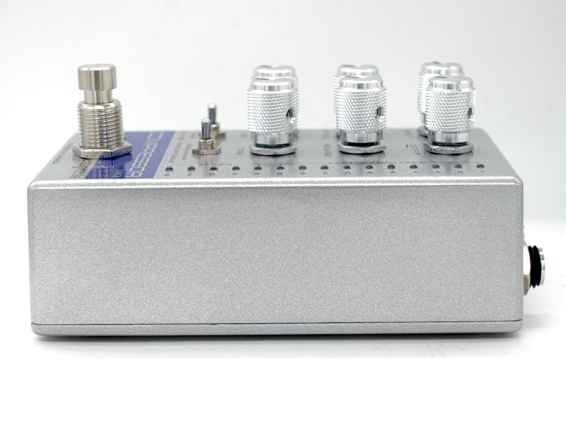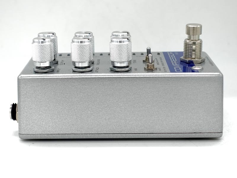 インプット/ゲインリダクションレベルのLEDメーター、独立したアタックとリリースコントロール、MIXノブによるパラレルコンプレッション、外部サイドチェインなどスタジオ向けハイエンドコンプレッサーにしか搭載されてこなかったコントロールをペダルサイズに凝縮。MKIIでは更に”Tilt”トーンEQコントロール、そしてコンプ検知回路上に調整可能なサイドチェインハイパスフィルターが搭載されています。