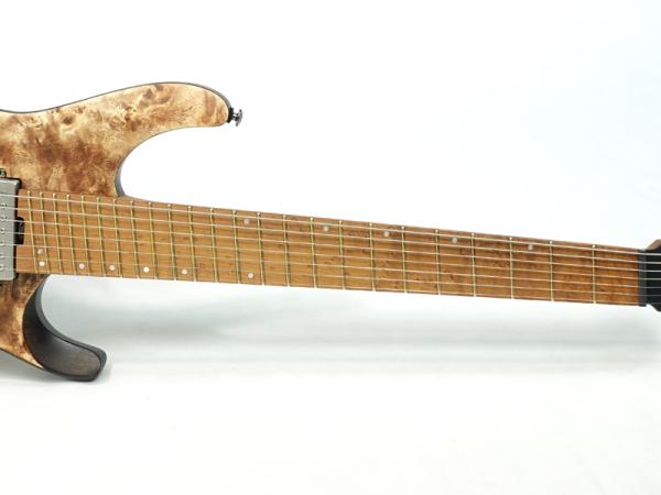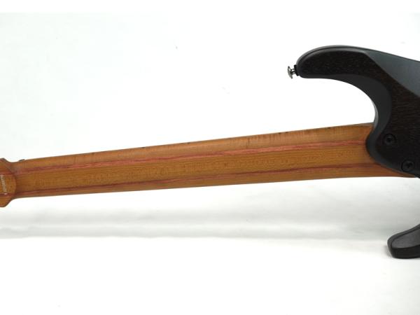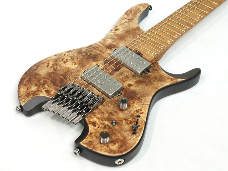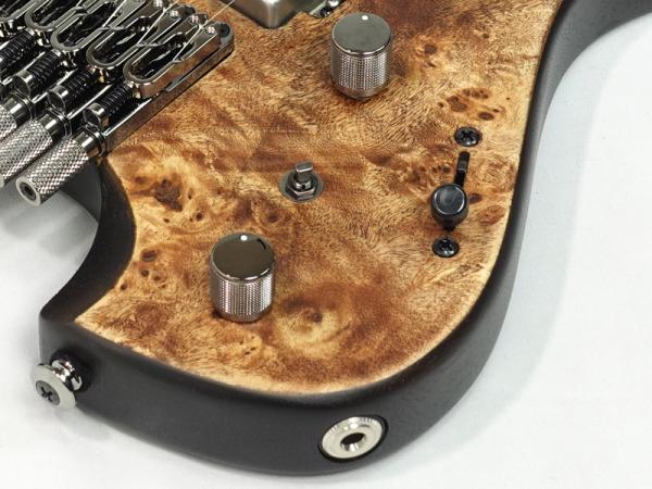 人間工学に基づいたコンターやカットが施された非常にコンパクトかつ軽量なナトーボディにエキゾチックな杢目のポプラバールをトップに採用。ネックシェイプは全長にわたり19mmのネック厚に統一した"Parallel Wizard Neck"に全フレットを8度角で均等にスラントしており、ギターを高い位置で構えた際のテクニカルなギタープレイにおいて驚くほどフィンガリングしやすい自然なプレイアビリティを実現しています。フレットにはゴージャスなゴールドのルックスのJescar EVOフレットを採用し、明るいトーンと高い耐久性を持ちます。