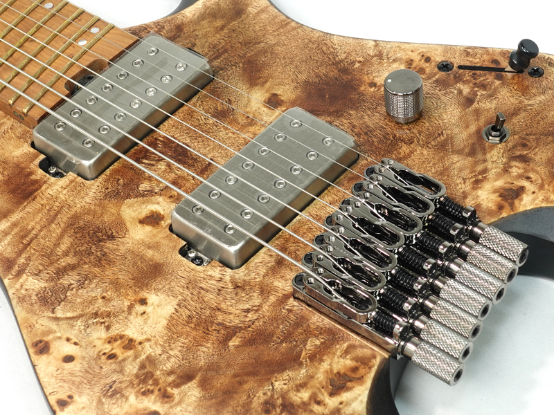 ヘッドレスギターのラインナップで唯一の7弦モデル、スラント・フレットに2ハム仕様です。