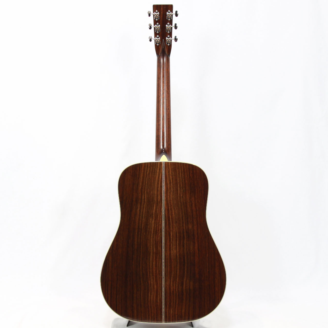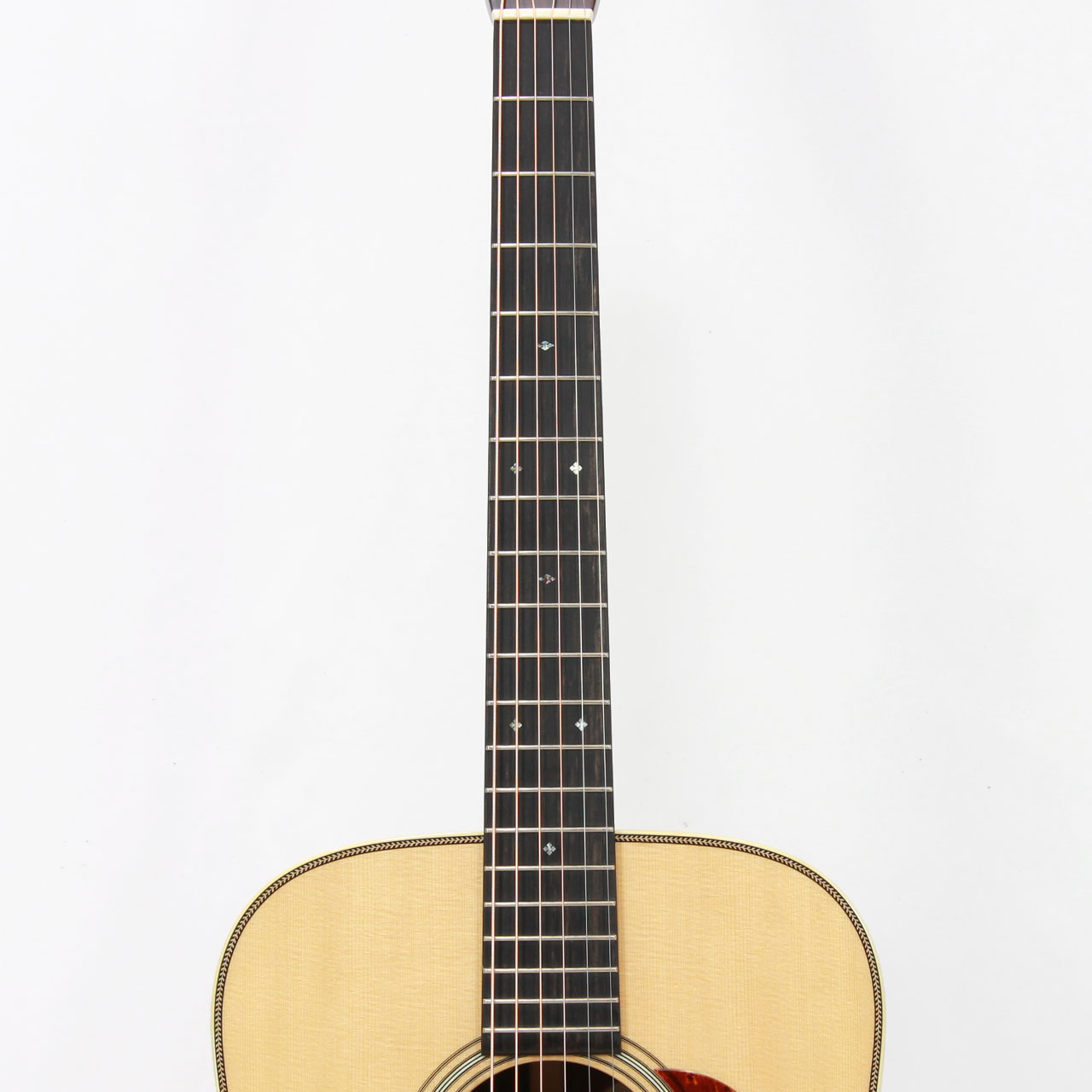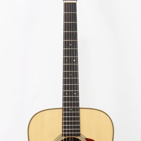 大容量のDボディに、トップ材には厳選されたシトカスプルース、サイド&バック材にも選りすぐりのインディアンローズウッドを使用し、ホンジュラスマホガニー材ネック、エボニー材指板&ブリッジ、44.5mmナット幅、647.7mmスケール、アイボロイドバインディング、スクエア&ダイアモンド指板インレイ、ジリコテ材による天神突板、シャーラー社のGrand Tuneペグと、妥協のないハイスペックな仕様となります。