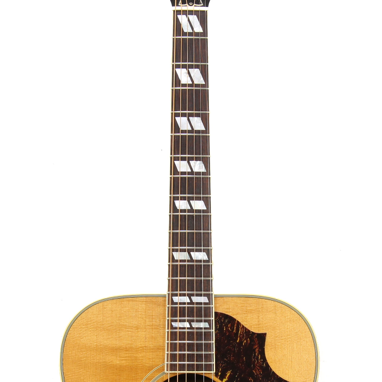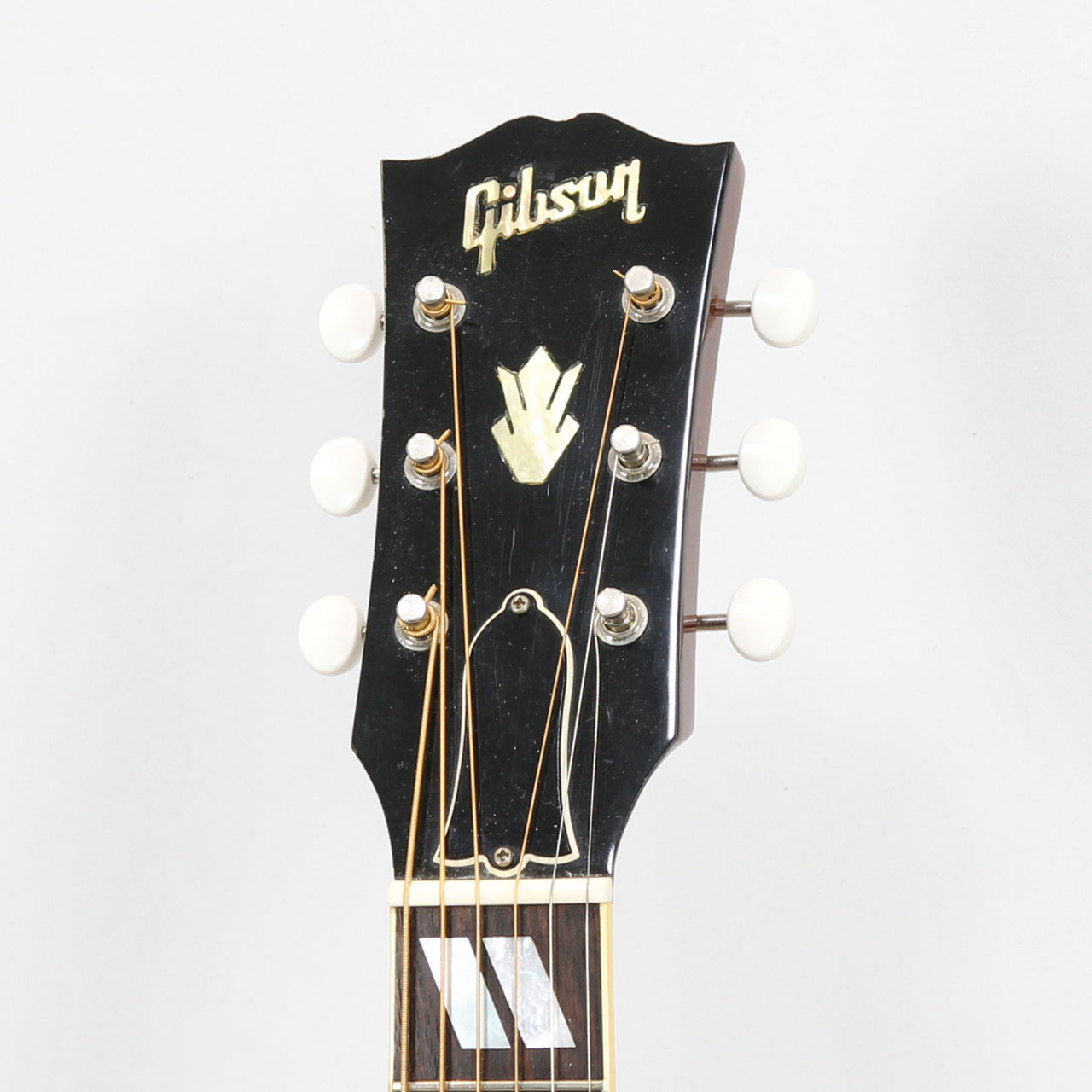 カントリーウェスタンとは、要はサザンジャンボのナチュラルカラーなのですが、スクエアショルダーと3ポイントのピックガード仕様で、J-45/J-50と比べてもずいぶん早く1962年頃からこの仕様に切り替わりました。
