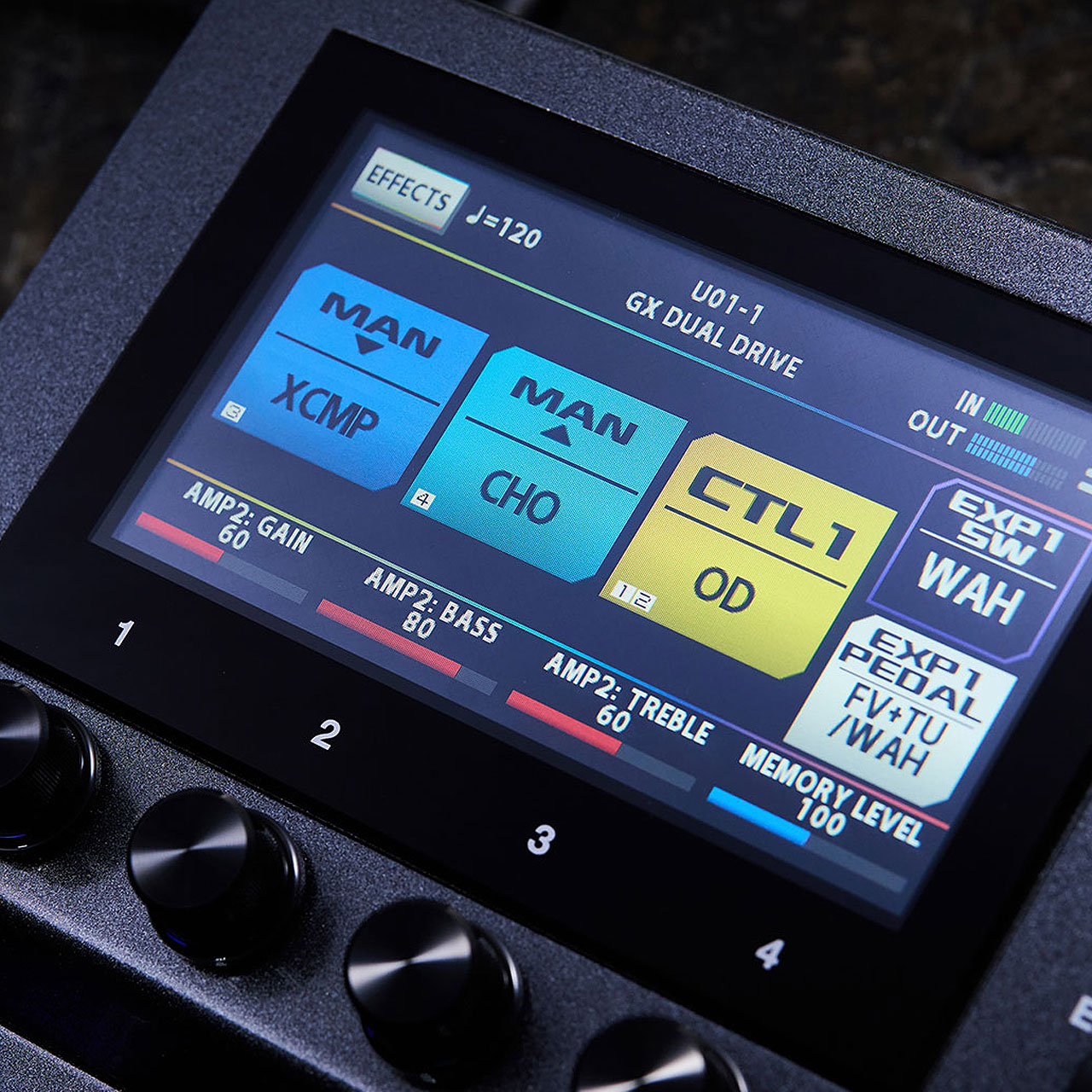 モダンでスマートなユーザー・インターフェイスと、優れたサウンドを兼ね備えたBOSSのマルチ・エフェクターGX-100。