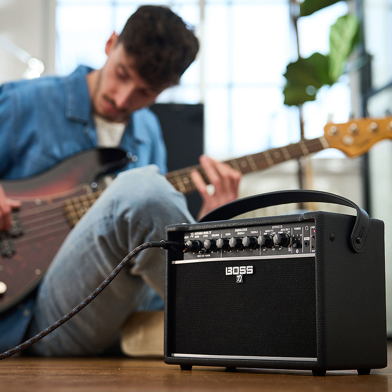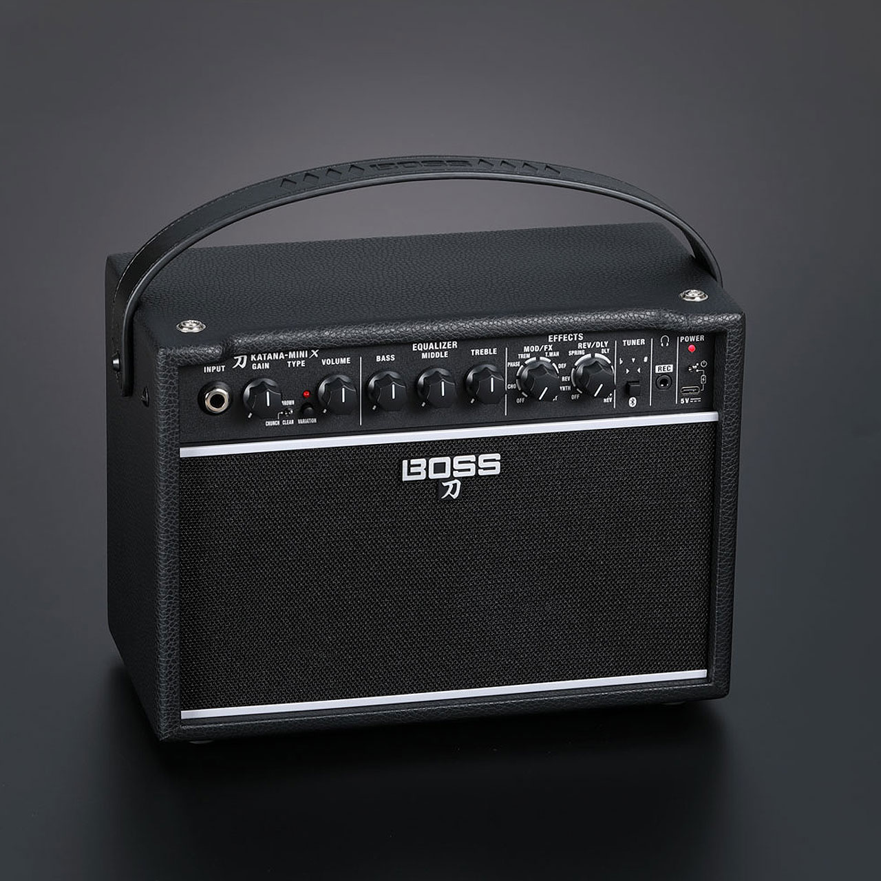 Bluetoothや充電式バッテリー、チューナーなど、毎日の演奏に便利な機能も網羅しています。また、ノブを含むすべての操作子がアンプ前面に配置されているため、シンプルな操作性で音作りもスムーズに行えます。KATANA-MINI Xは、日々の演奏においてもワンランク上の質を求めるギタリストにぴったりな、BOSSからの新提案です。