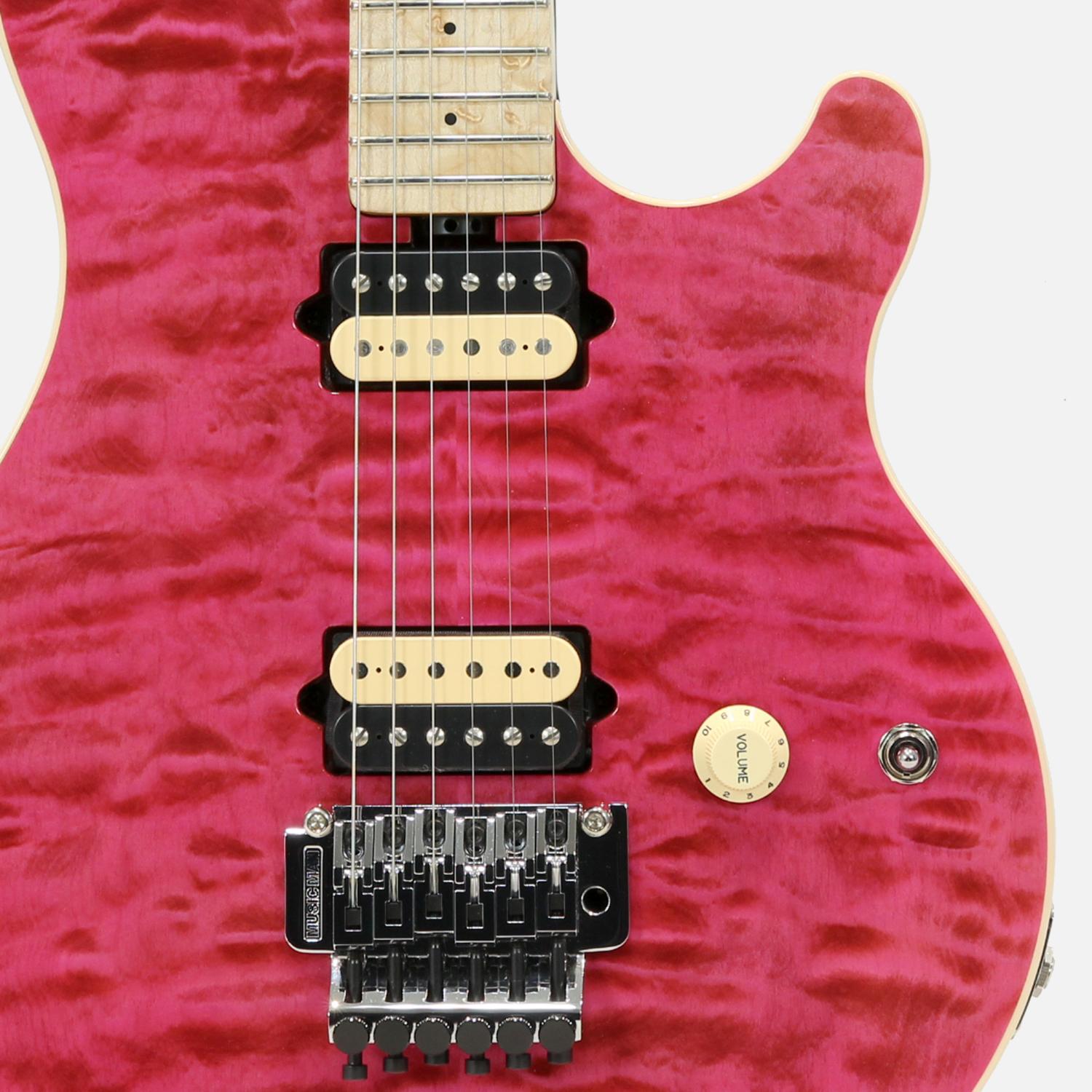 ピックアップには、専用に開発されたディマジオ・カスタム・ピックアップがダイレクト・マウントされ、トレモロ・システムは、深いアーミングが可能なフロイドローズ・ライセンス・トレモロをノンフローティングでセットした仕様となっています。