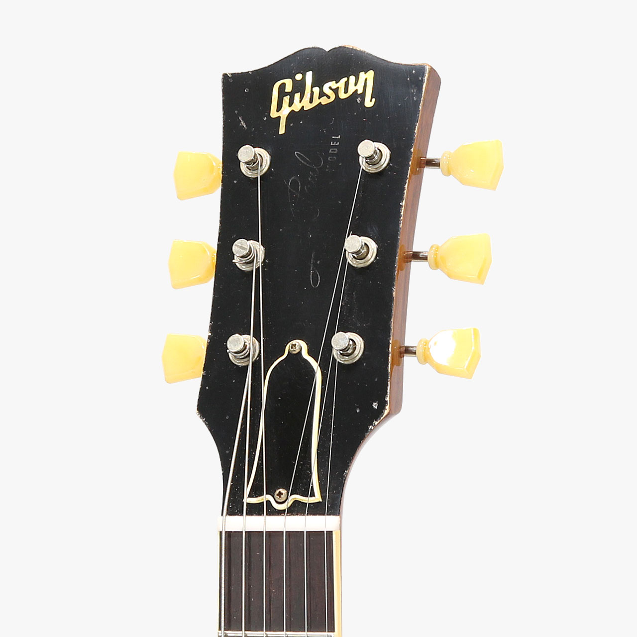 トップ材にAAAAAグレードに位置する"R-Top"マテリアルを採用し極上のルックスに仕上がっております。絶妙に暴れた荒れ感のあるトップは角度によって、その表情を多彩に変えてくれ、ダーティーレモンカラーとベストマッチです。本トップをセレクトした時点でダーティーレモンフィニッシュとすることを決めていたトップ材なのでトータルコーディネートが行き届いた逸品と言えるでしょう。マーフィーラボフィニッシュによるヴィンテージトーンへの追求、ブラッシュアップは万全、ヘビーエイジド仕上げも長年大事に使われてきた歴史を感じさせる、そんな仕上げとなっております。