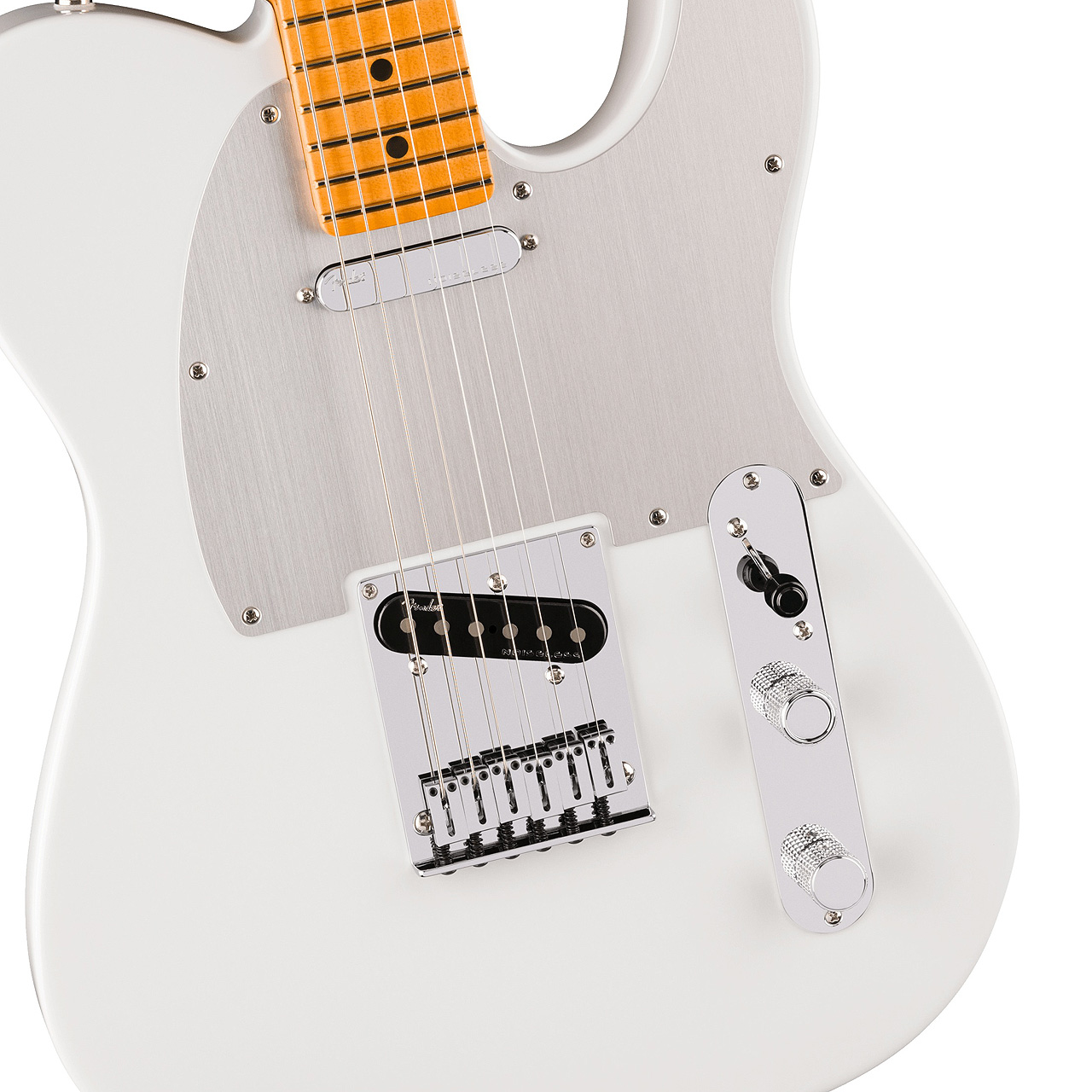American Ultra II Telecaster®は、厳選されたアルダーボディに深めのボディコンターが施されています。クォーターソーンメイプルネックはModern "D"ネックシェイプで、ネックバックは触り心地の良いUltra Satinフィニッシュで仕上げられています。10〜14インチコンパウンドラジアのエボニーまたはクォーターソーンメイプル指板は、エッジを丁寧にロールオフ処理したUltraロールドエッジが採用されており、ミディアムジャンボフレット、蓄光式Luminlay®サイドドット、Graph Tech® TUSQ®ナットを装備しています。テーパードネックヒールと深いボディコンターにより、ハイポジションへの容易なアクセスが可能です。