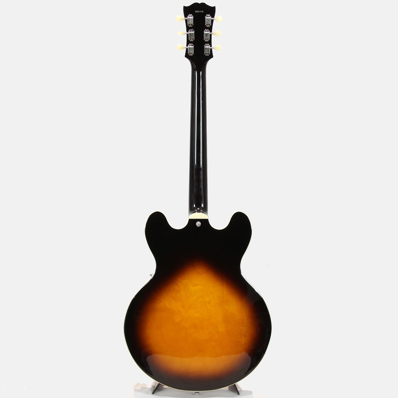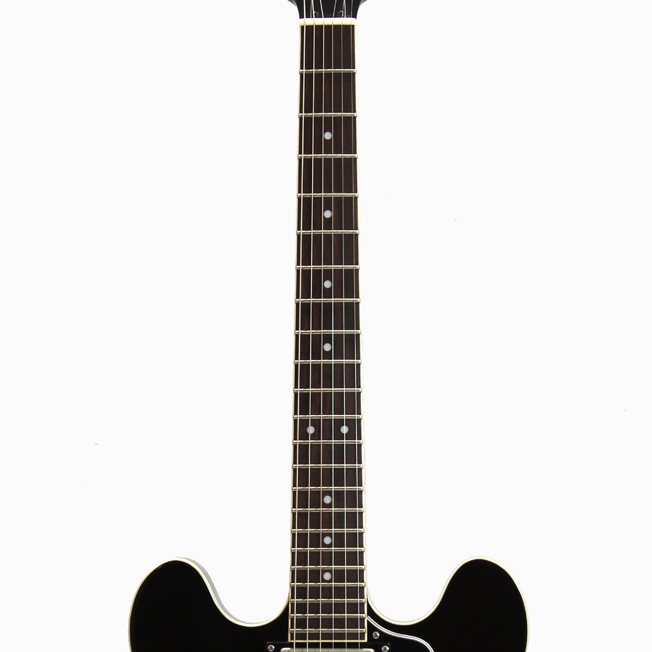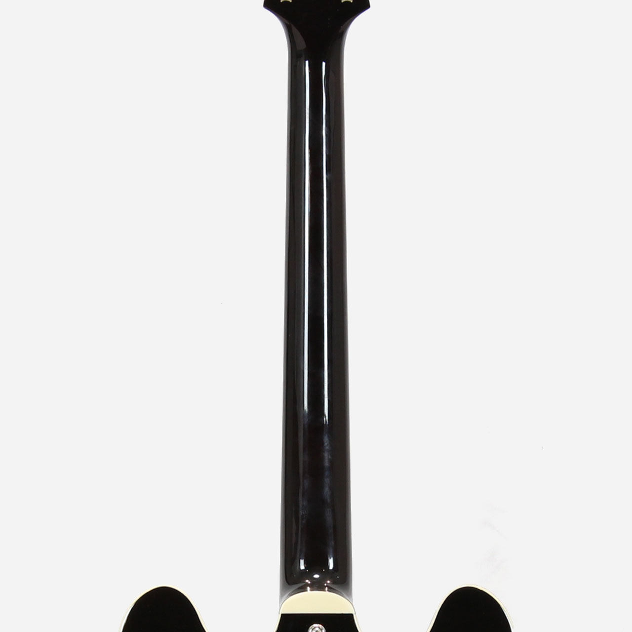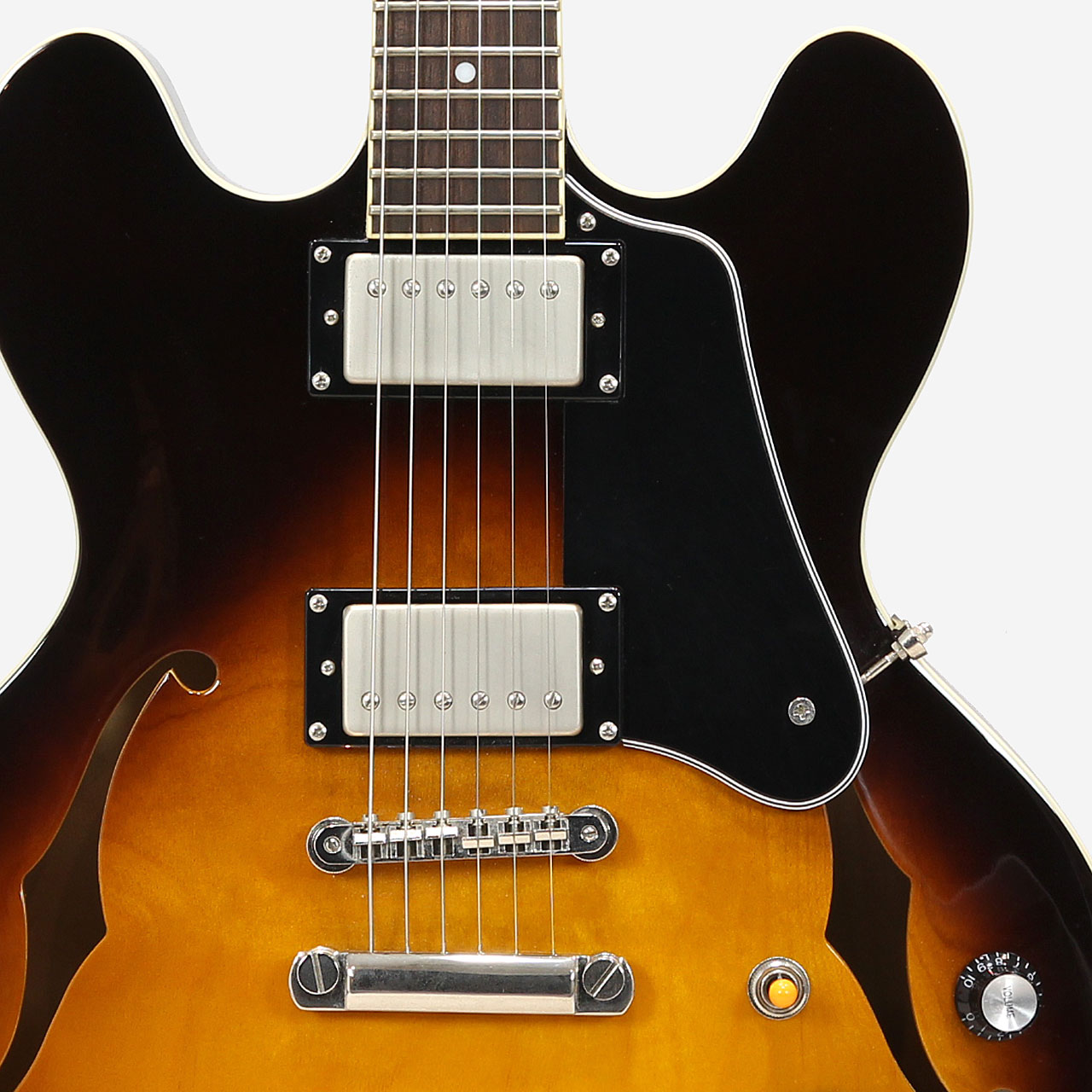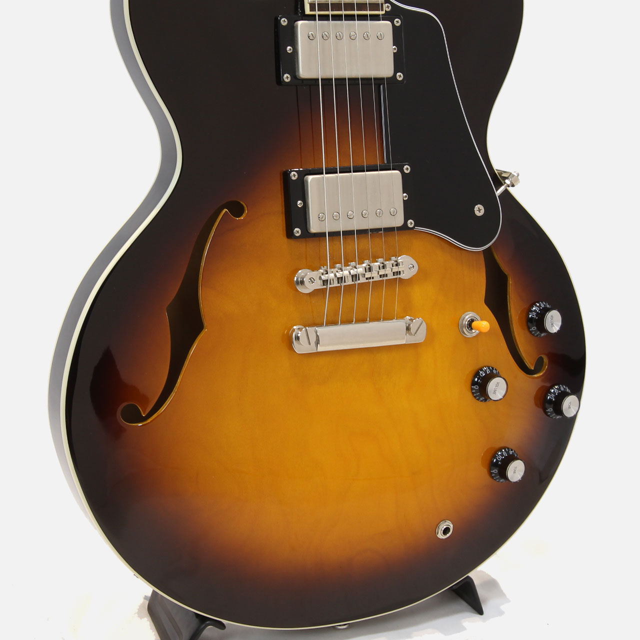 トラディショナルなFホールセミホロウメイプルボディ、メイプルセットネック、オバンコール指板。