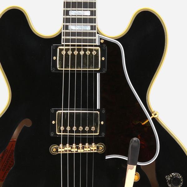 ヴィンテージオリジナルパーツの調査から復刻されたレプリカパーツによりリアルな風格でスプリットダイヤモンドのヘッドストックインレイ、ブロックポジション、マルチプライ・バインディング、ゴールドのハードウェアとESシリーズ最上位モデルらしい高級感あふれる仕上がりです。