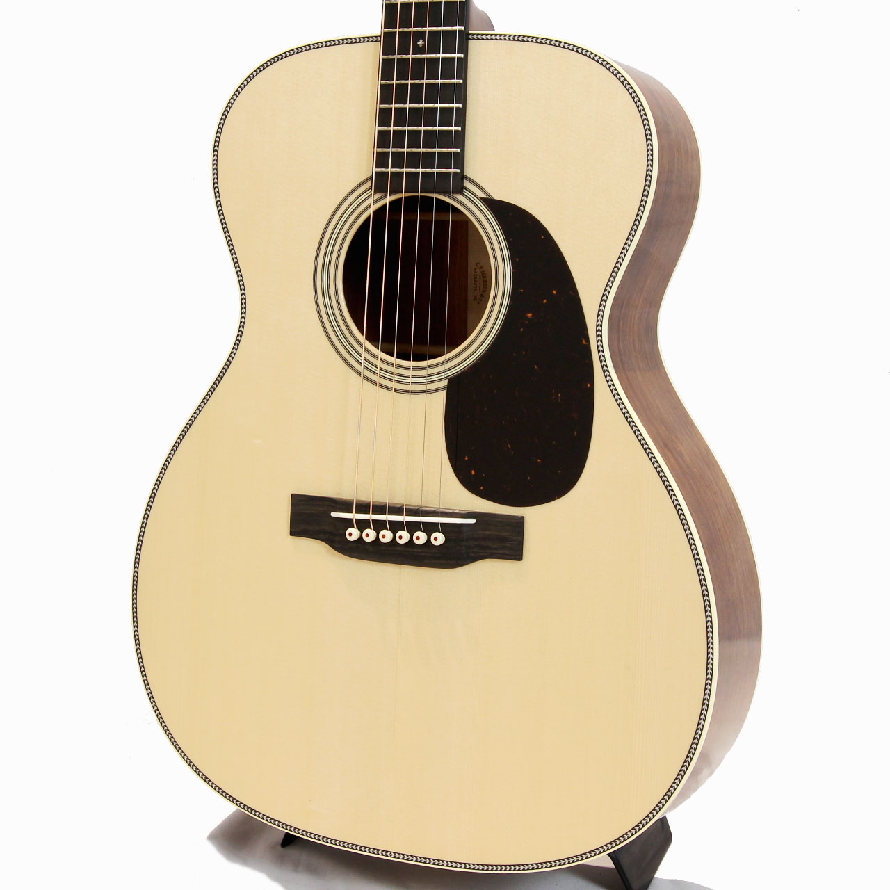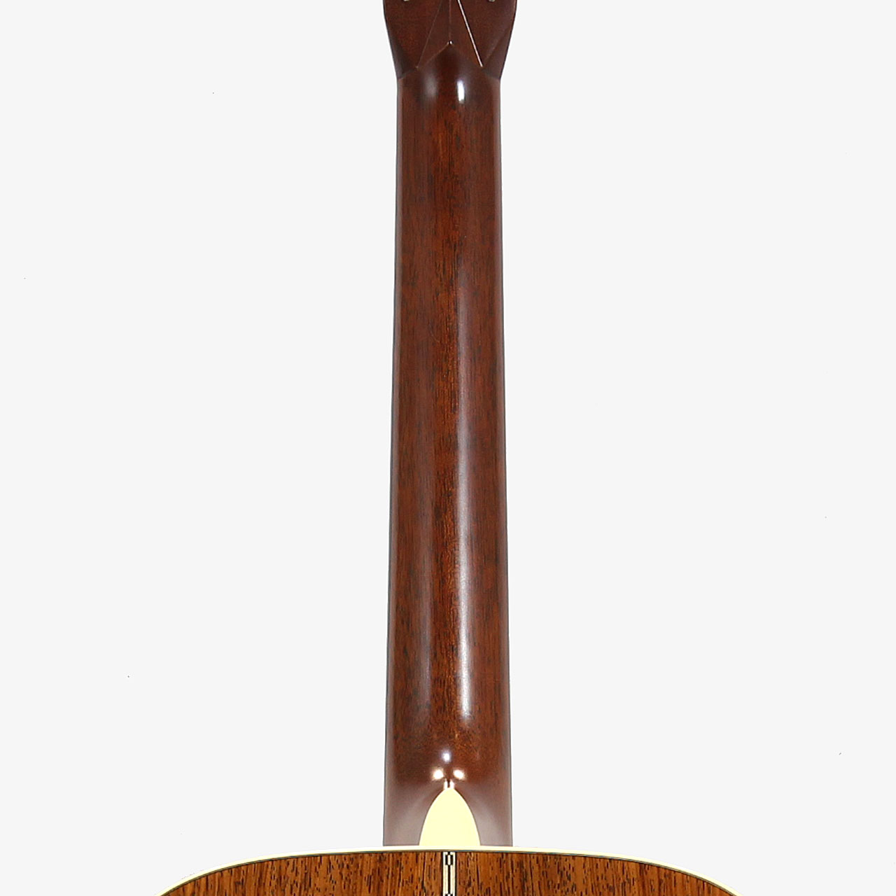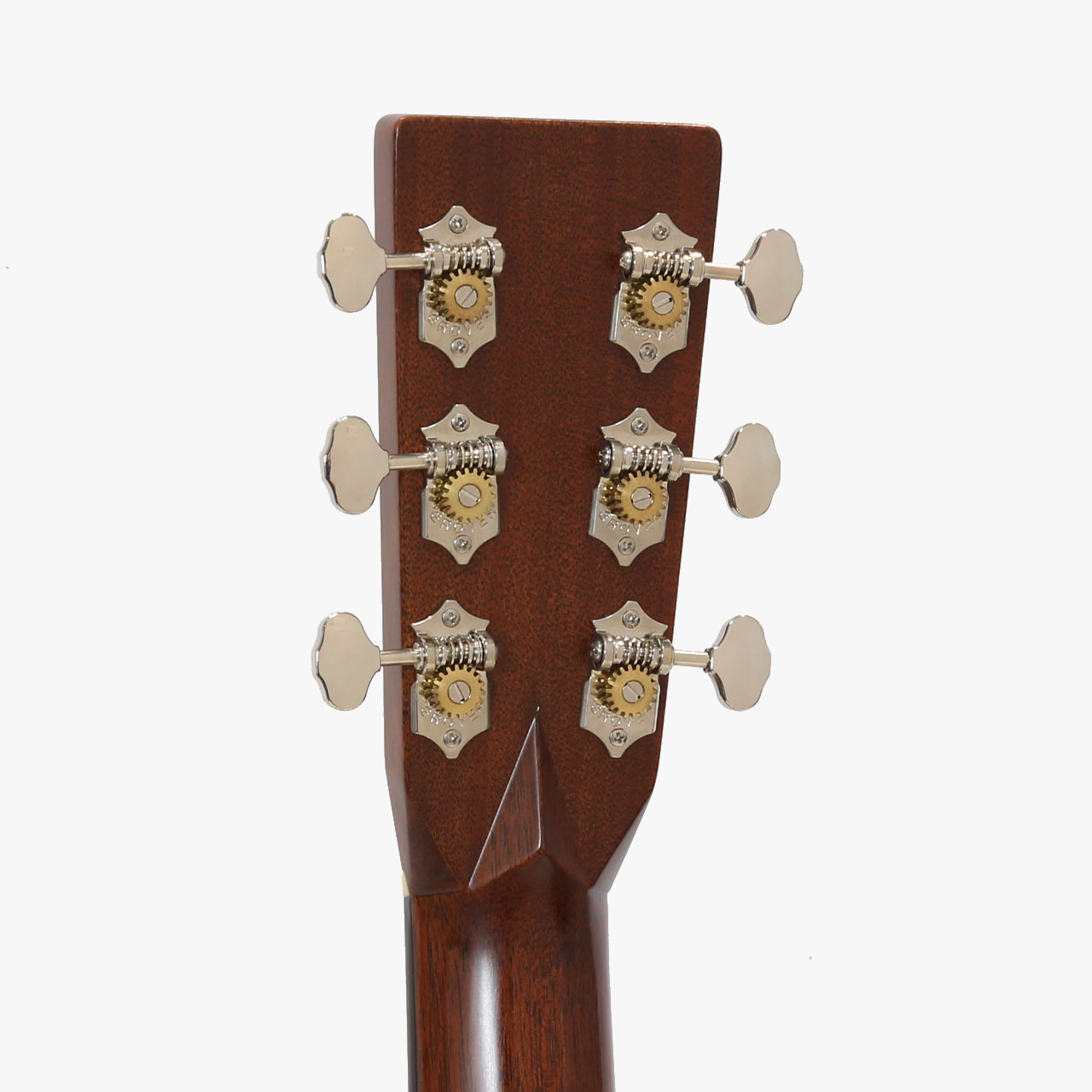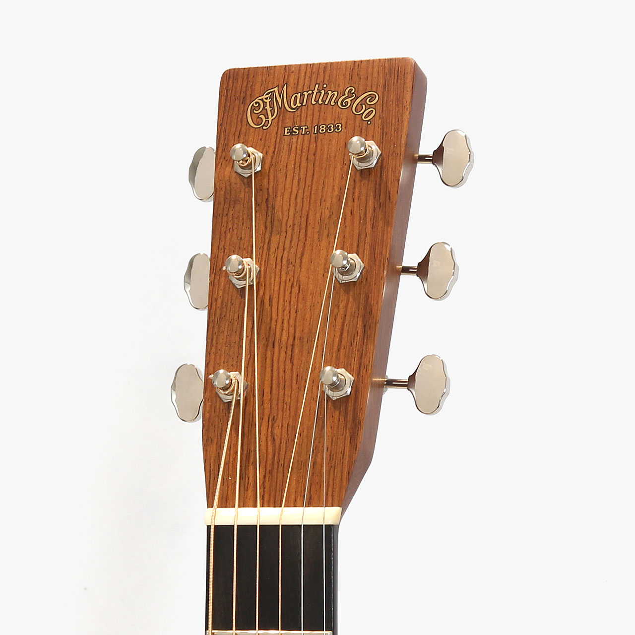 その他スペックとして、マホガニー材ネック、エボニー材指板&駒、アディロンダックスプルース材ブレイシング( Xブレイシング・スタンダードスキャロップド)、ナット幅は44.5mmのModified Low Ovalプロファイルネック、シルバーカラーのMARTINオールドスタイル・デカール、ヘリンボーントリム&ロゼッタ、ダイアモンド&スクエア指板インレイ、Grover V97ペグ、ロングサドルとなります。