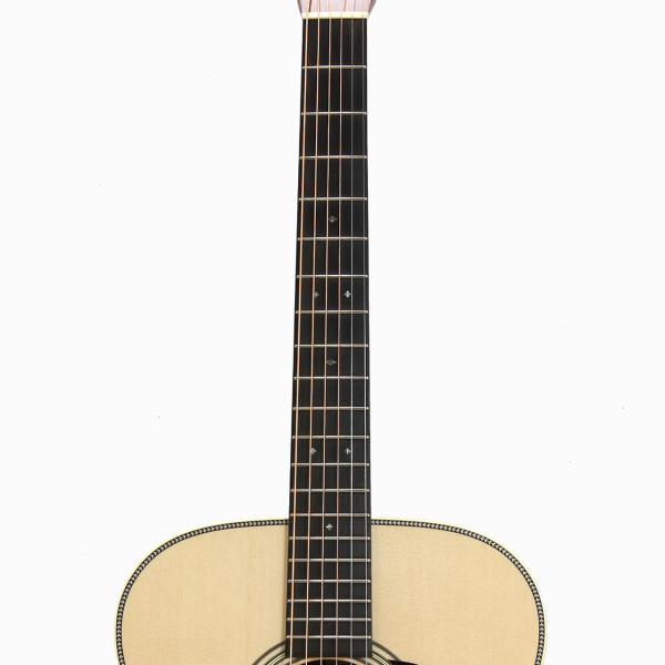 基本スペックはバランス良く人気の高い000-28スタイル。同じスペックで00のモデルも制作しましたが、こちらはボディサイズの分生音がより豊かで、しっかりとした低域を出力可能です。