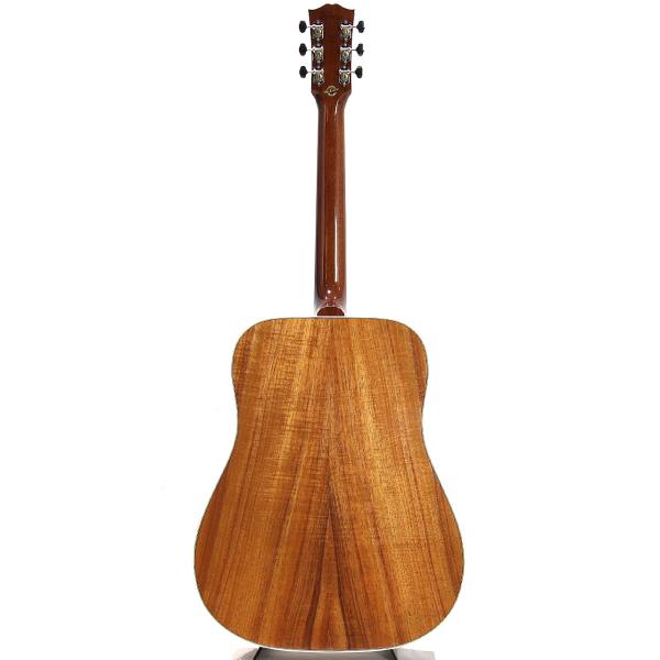 トップ材は弾力と力強さを併せ持つカルパチアン・スプルース、サイド&バック材にはフィギュアードの入った上質なハワイアン・コアを使用。マホガニー材ネック、エボニー材指板&ブリッジ、43.8mmナット幅に628mmスケール、Grover オープンバックペグ、L.R.Baggs Element VTCを搭載したエレアコ仕様となっております。