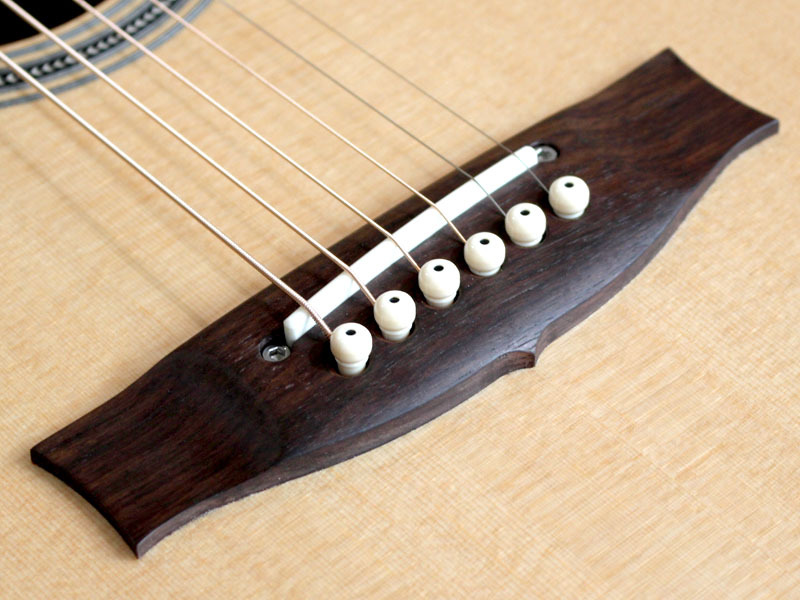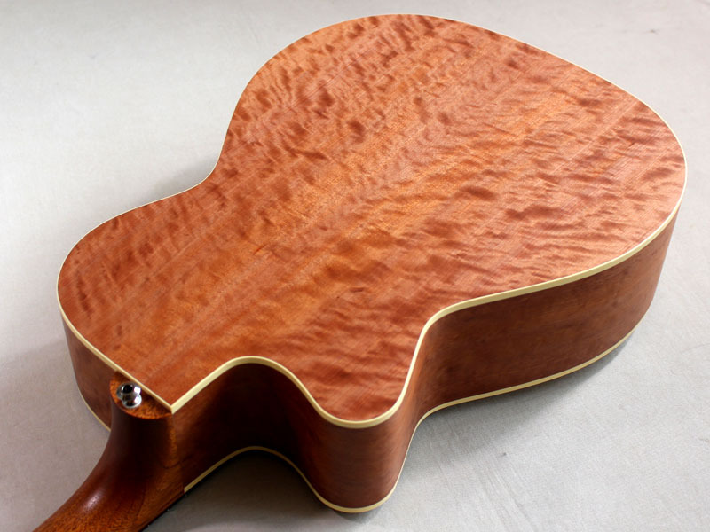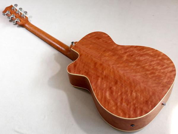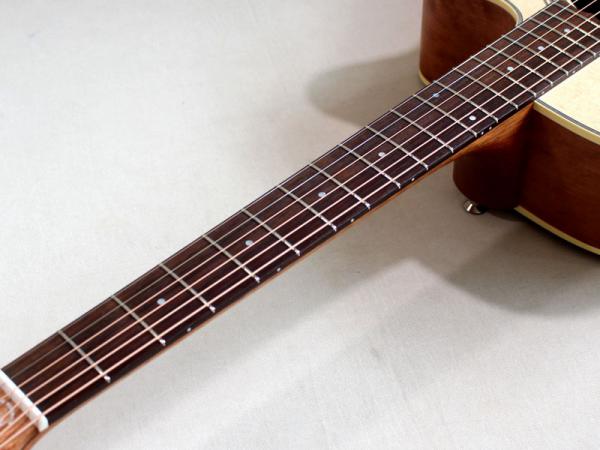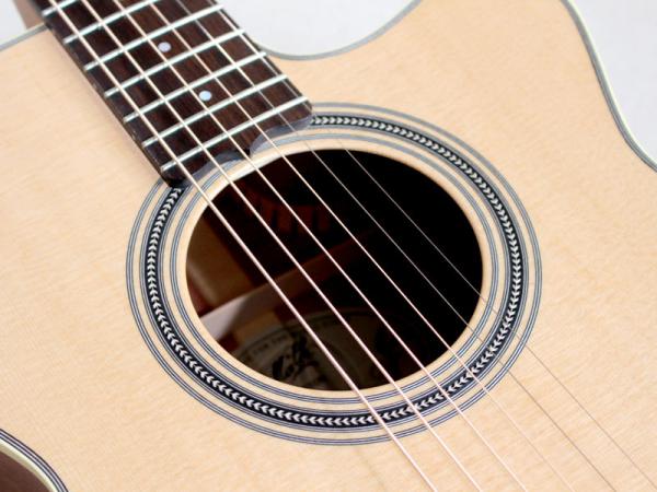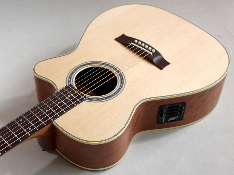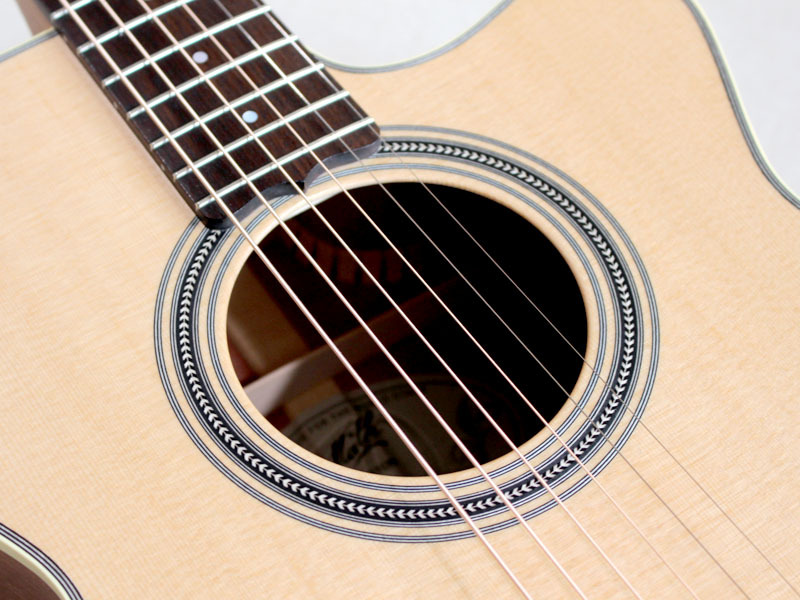 とりわけ、内部の構造材などはマスタールシアー”アンディ・アレン”作らしく極限までセットアップされており、サウンドもピアニッシモのタッチに吸い付くように反応する圧倒的な立ち上がりのスムーズさと小振りなボディとは思えない音量を実現。エレアコとしてここまでの生音を引き出せるのは驚異的でしょう。