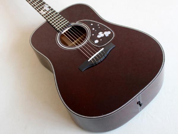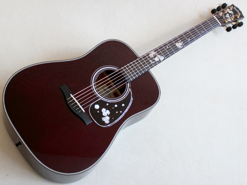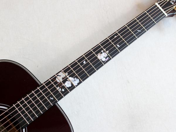 スペックは定番のドレッドノートサイズ。シトカスプルース材トップ、国産桜材(ソメイヨシノ)サイド&バック、削りだしホンジュラスマホガニー材1ピース、エボニー材指板&駒、645mmスケール、43mmナット幅、フォワードシフト(スキャロップド)ブレーシングパターン、GOTOH510Zゴールドペグ、 フルグロスフィニッシュと豪華で美しい見た目が魅力的な内容となっております。