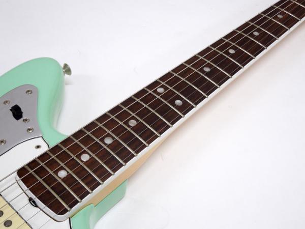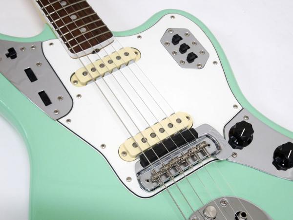 ジャガーのリード/リズムのプリセット切り替え、ローカットスイッチといったユニークな回路も当時の設計をそのまま受け継いでいます。ヴィンテージ・トールフレット、オリジナルモデルのボディラジアス、プッシュインアーム式のロックボタン付きフローティング・トレモロをはじめとするヴィンテージスタイル・ハードウェア、ヴィンテージスタイル・ハードケース、極上のトーンと絶妙な経年変化を見せるラッカーフィニッシュなど、細部にまで60年代モデルの代表的なスペックを反映しつつ、モダンプレイヤーが求めるプレイヤビリティを兼ね備えています。