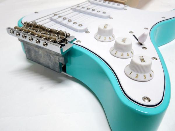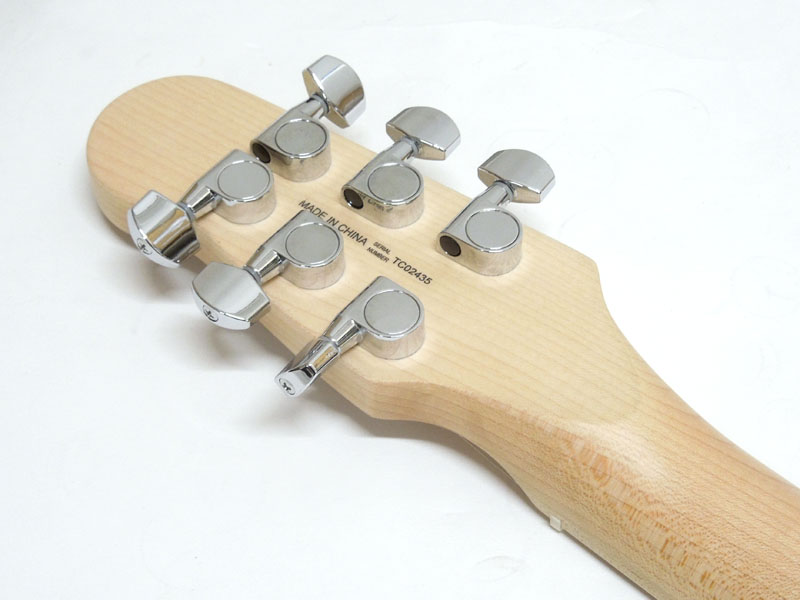 ボディーにはポプラを採用し、可能な限り最小限のボディー・サイズに仕上げています。コンパクト性を重視し、ヘッドストックも小さくなるよう3:3のマシンヘッド配列になっています。