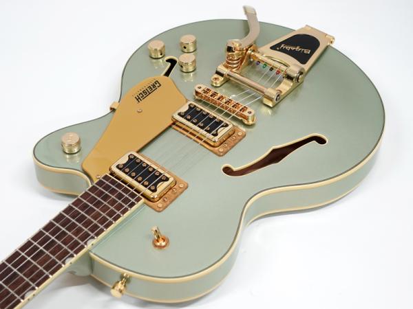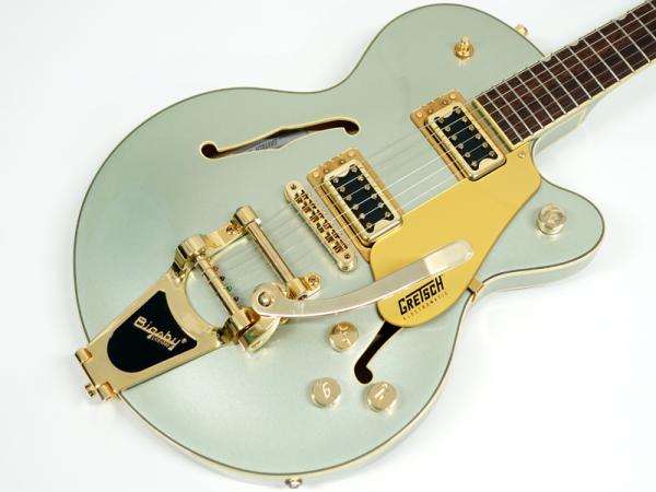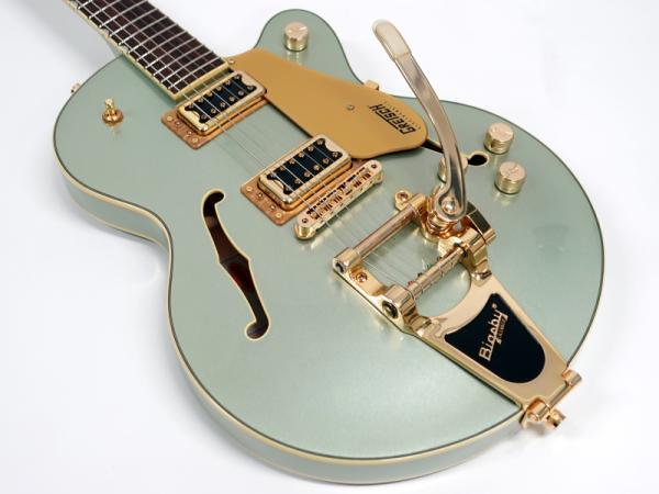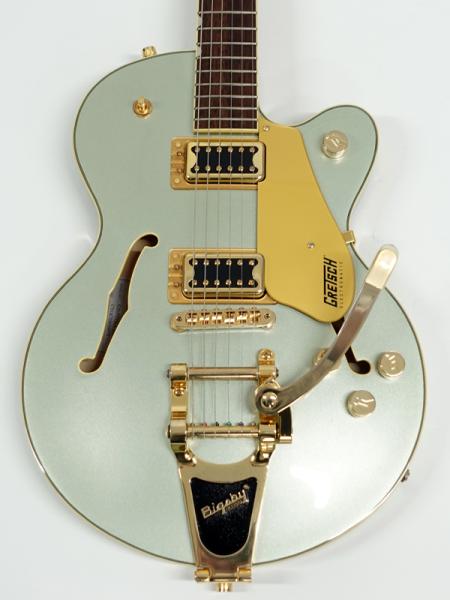 特徴的なピックアップデザインや指板インレイ、Bigsbyユニットなどグレッチらしさが満載です。