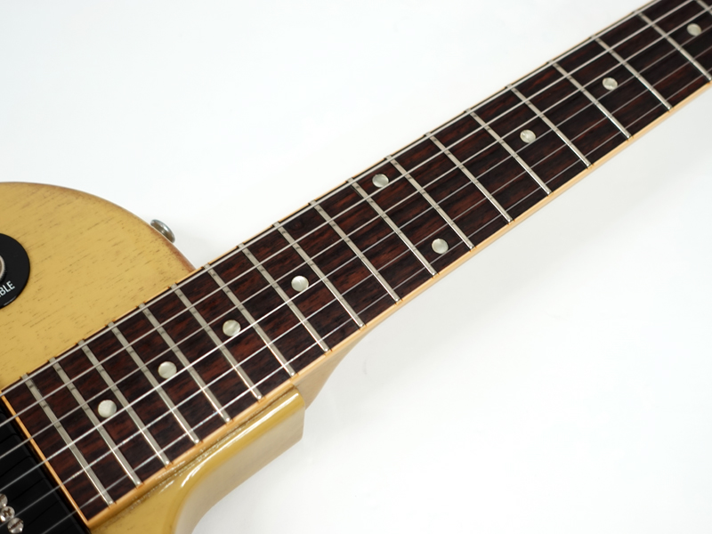 厳選された上質なマホガニーボディにマホガニーネック、ローズウッド指板はハイドグルー接着でふくよかな生鳴りも感じられます。3連クルーソンタイプペグ、ラップアラウンドのストップテールピースにP90ピックアップを2基搭載。