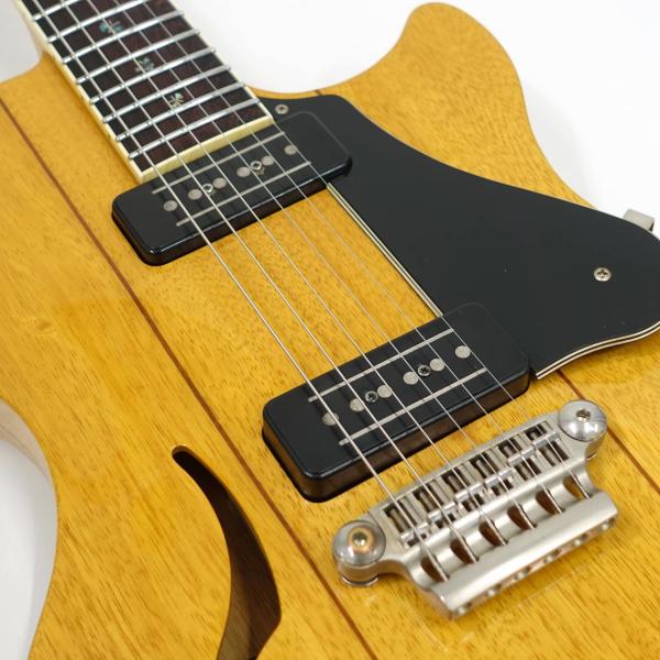 ピックアップはVOX CoAxeを搭載。このピックアップが新機構で当時話題をかっさらいましたね。ハムバッカー、シングルの切り替えに加えてP-90サウンドまで出せるという多彩さ。各ピックアップに本仕様が盛り込まれておりますので3Wayピックアップセレクターと加えるとトータル15種類のサウンドをアウトプットしれくれます。様々なトーンバリエーションは全て使えるサウンドでクリーンからディストーションまで良質なトーンをアウトプットしてくれます。