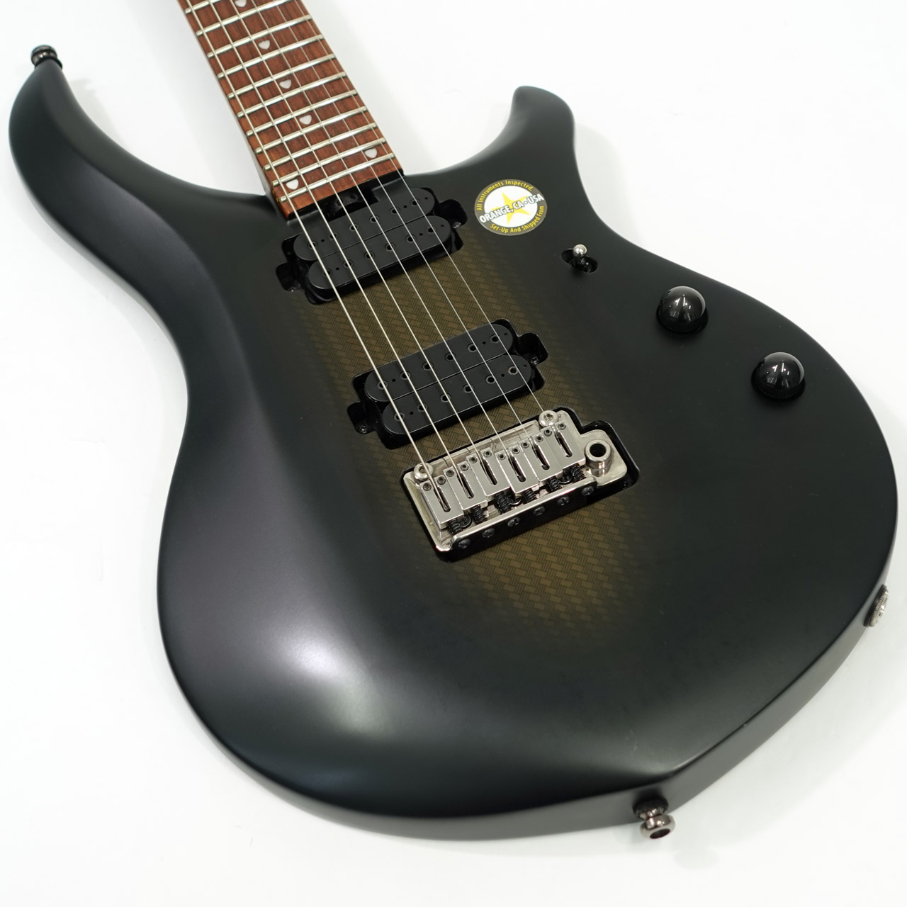 ハードウェアはすべてブラック・クロームで、2点支持のモダン・トレモロ、チューニングの狂いを最小限に抑えるロッキング・チューナーを搭載しています。