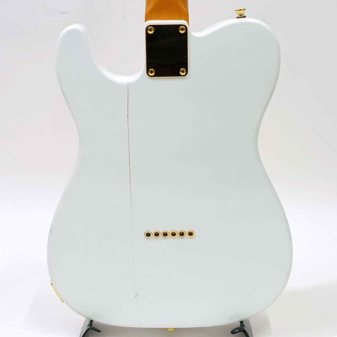 ボディバックにストラップピンが増設され、そこを起点にボディに割れが発生しています。