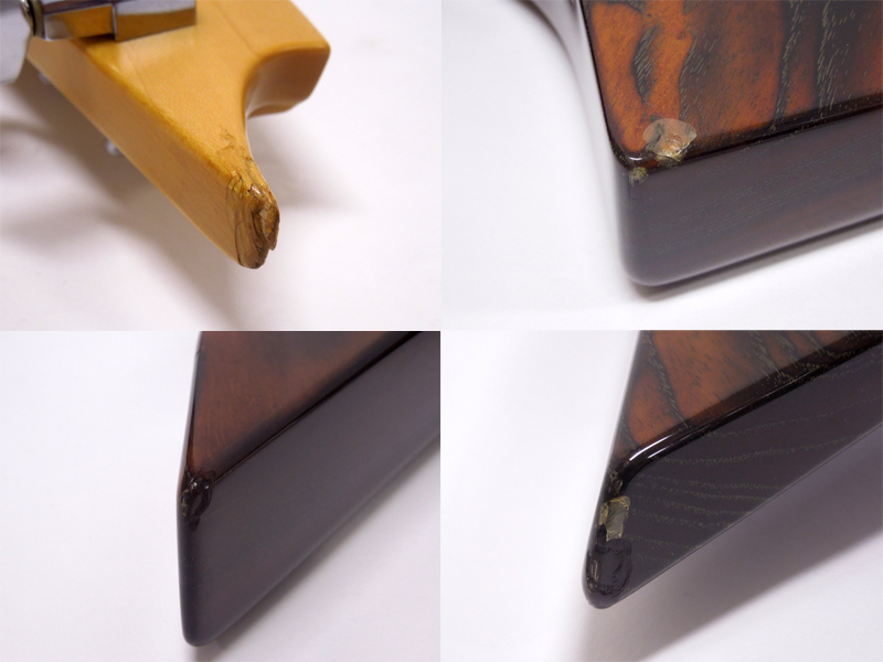 ボディの先端などには変形ギターの宿命ともいうべき打痕が見られます。