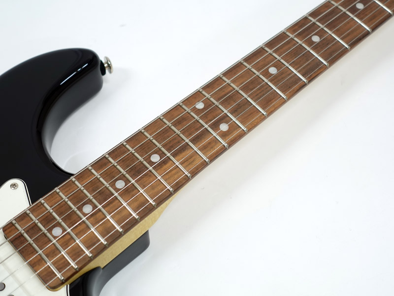 アルダーボディにブラックカラーを採用したデラックス。メイプルネック&カリビアンローズウッド指板、サテン仕上げのモダンな薄めのネックシェイプで弾きやすいグリップを持ちます。各種ハードウェアは上位機種と同様のパーツが搭載されています。