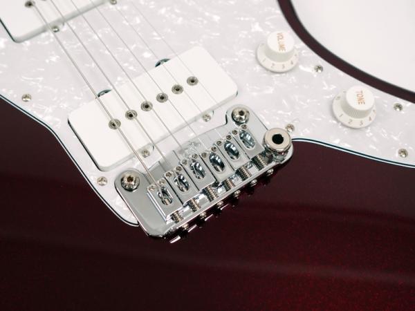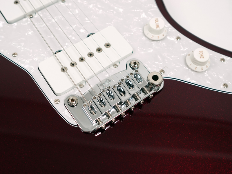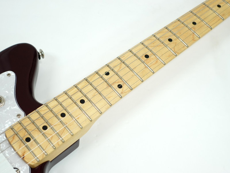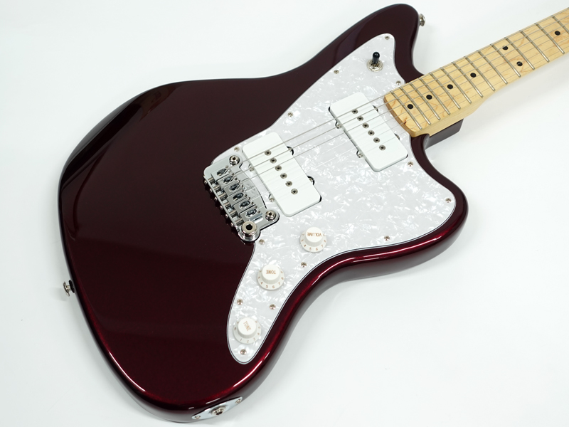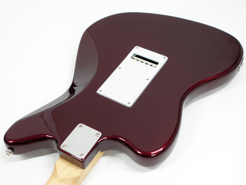 アルダーボディにルビーレッドメタリックカラー、メイプルネック、メイプル指板。