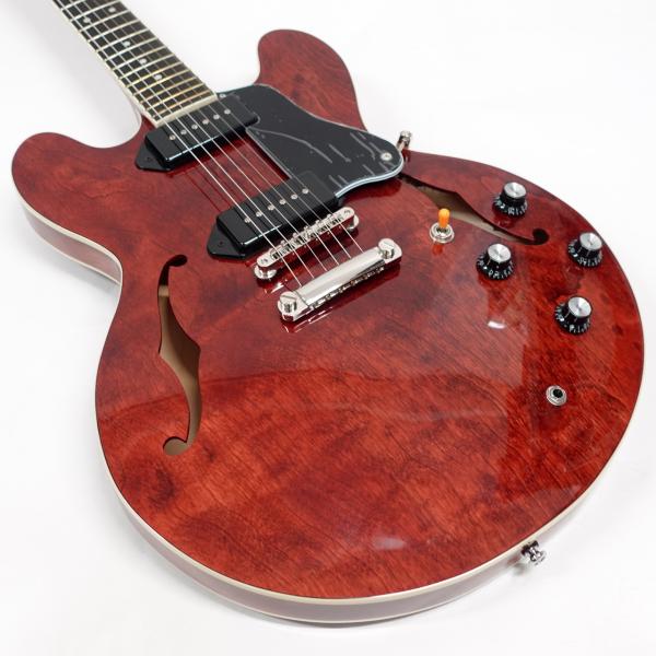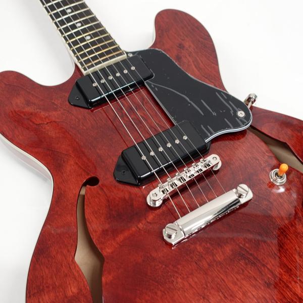 ピックアップにはオリジナルのP-90を搭載し、シングルながら太さのあるミッドレンジがおいしい甘いサウンドを出力。セミホロウ構造で芯もしっかりとあり、クリーンからドライブまで艶のあるサウンドです。