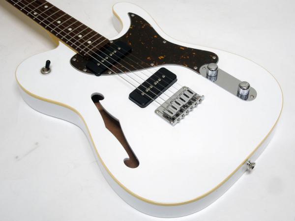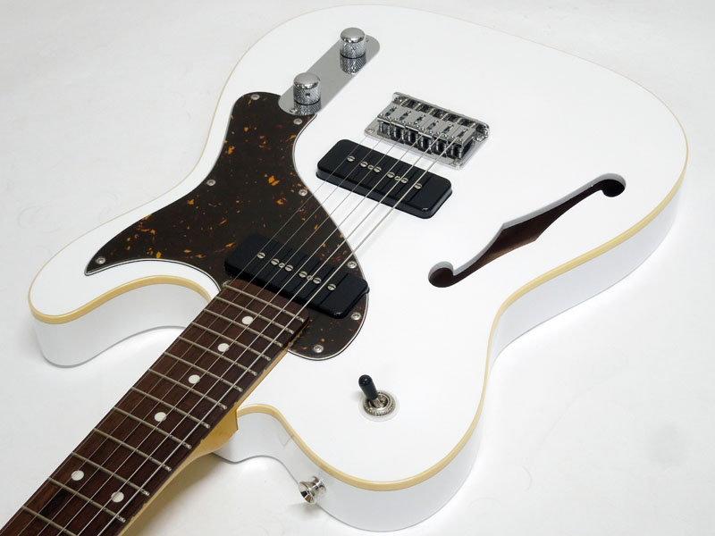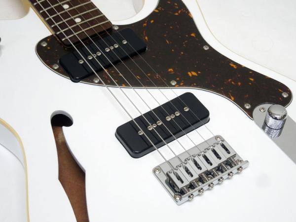 オーダー仕様の本機は珍しいFホールの空いたセミホロウボディを採用。
