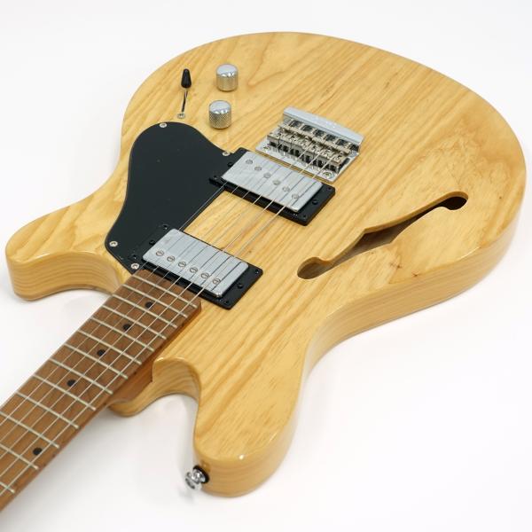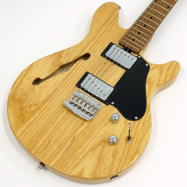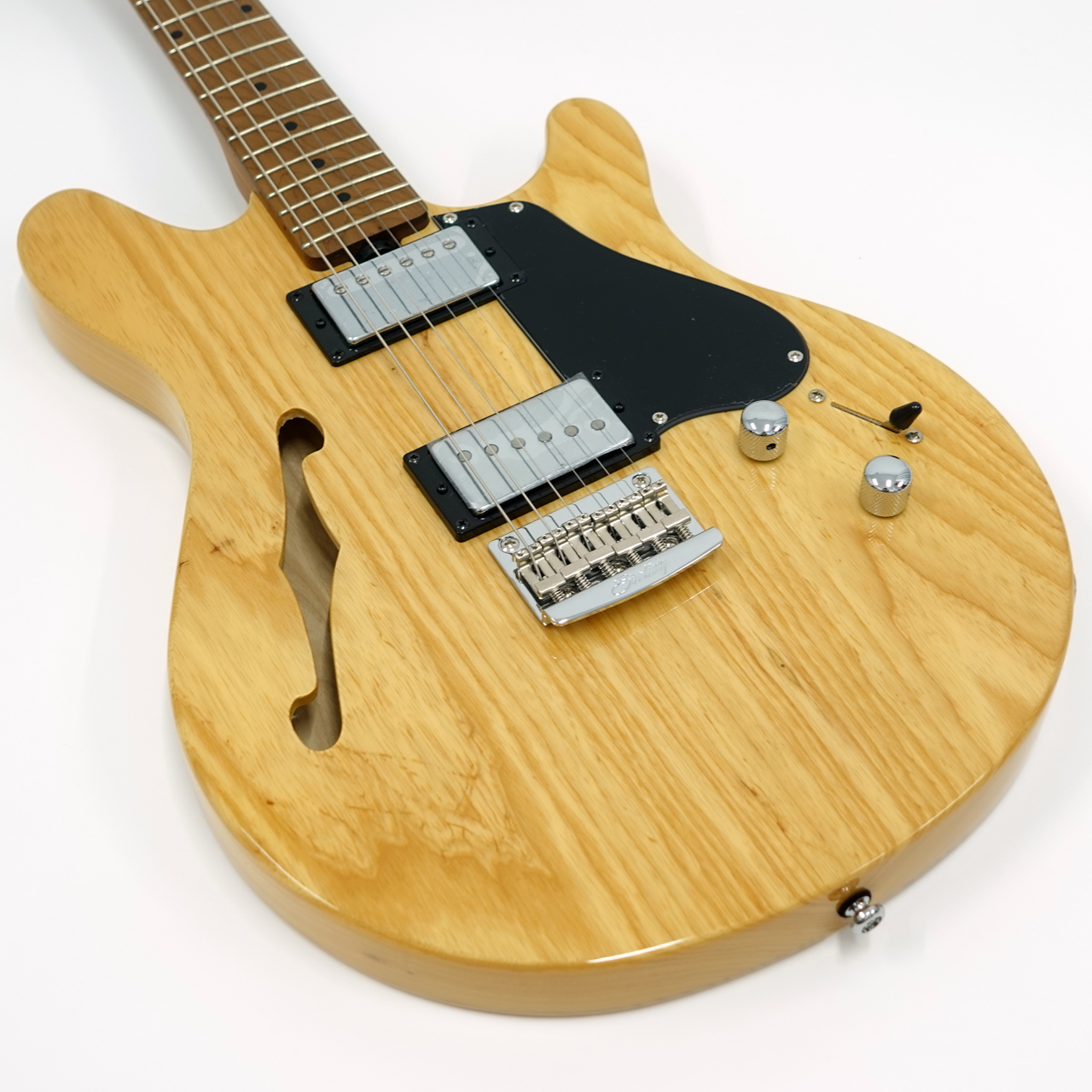 小さめのセミアコみたいですが、実はホワイトアッシュボディのチェンバー構造なのでしっかりとした低音、サスティーンが得られます。