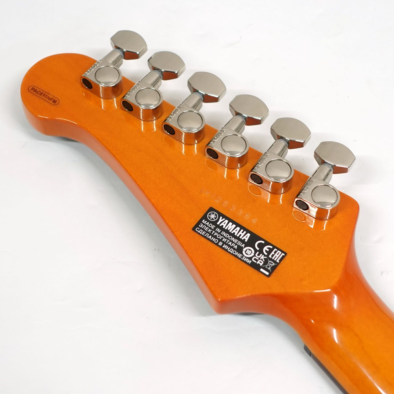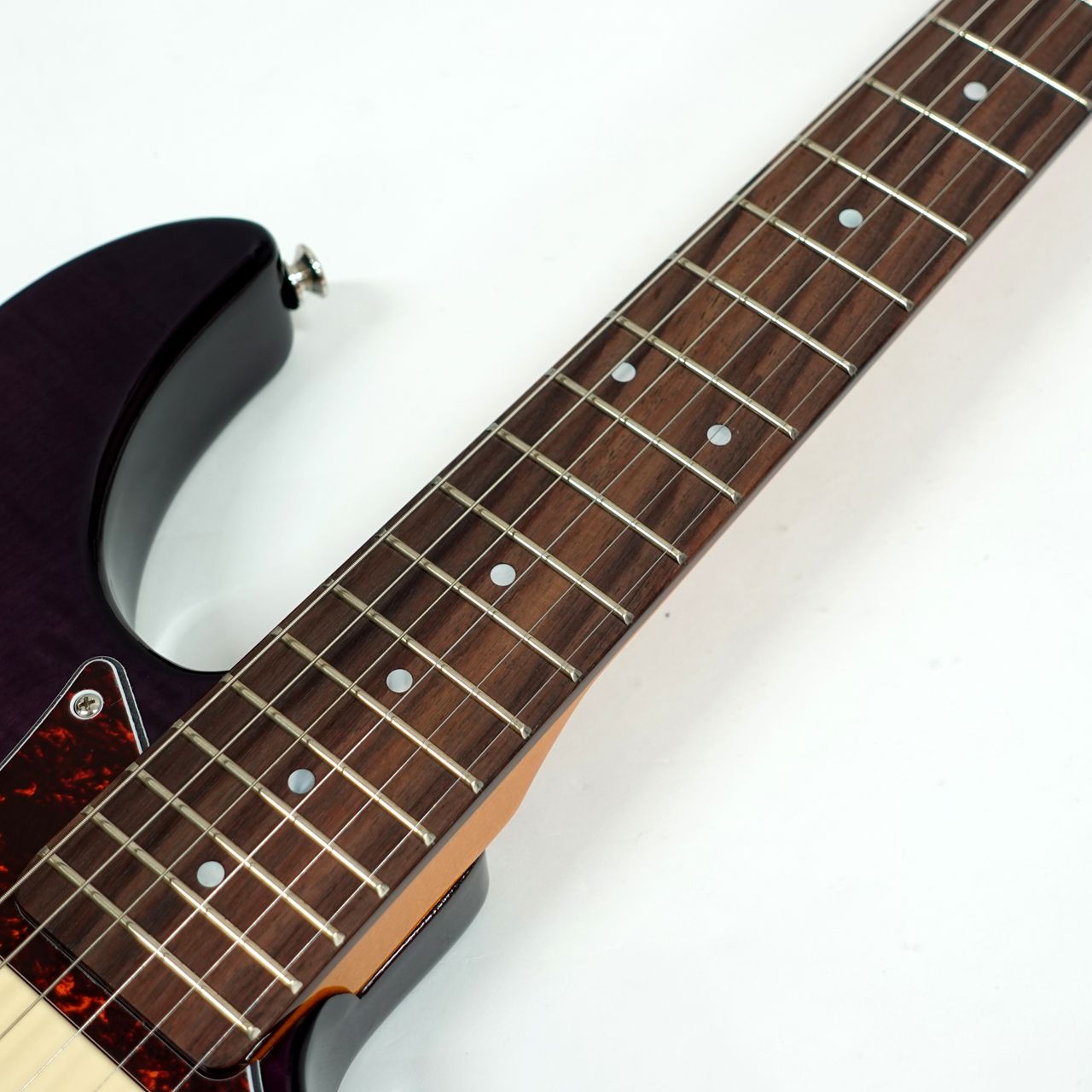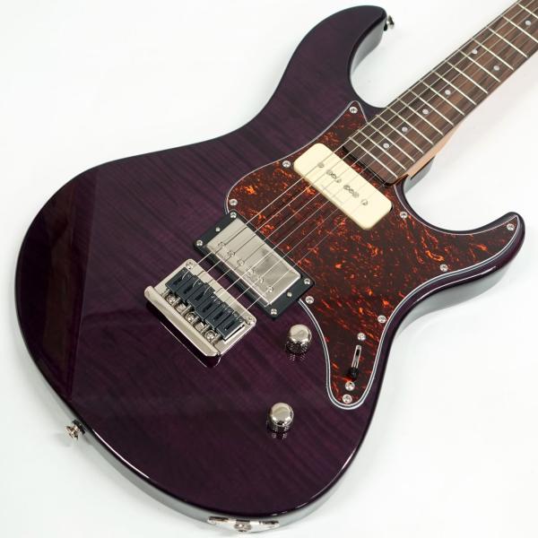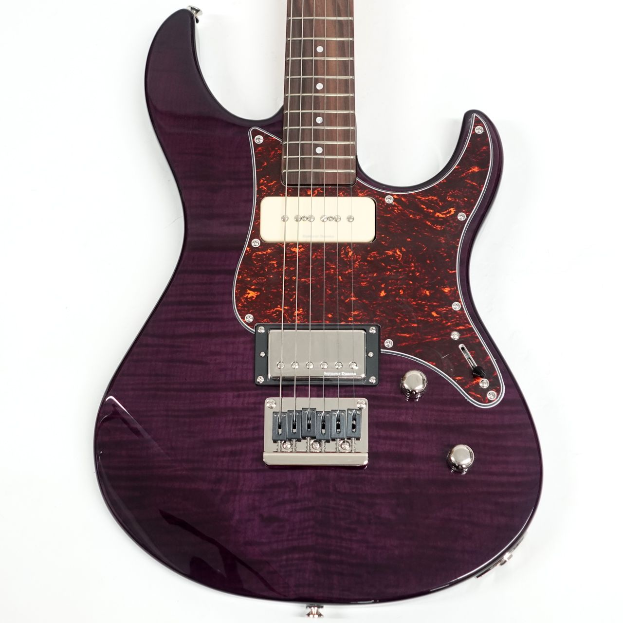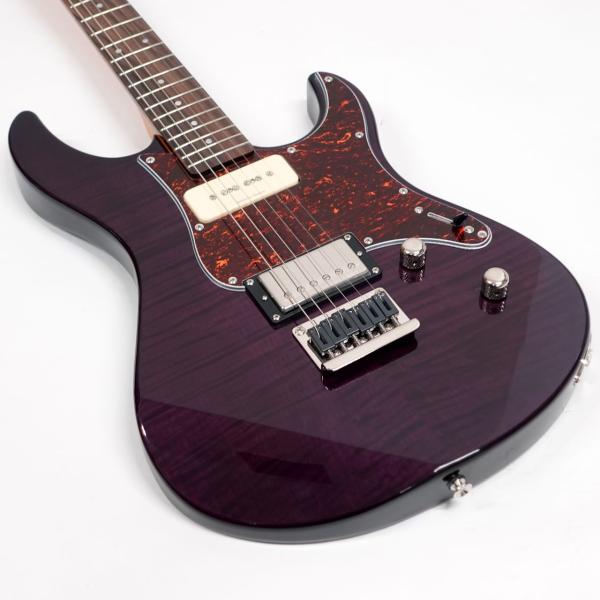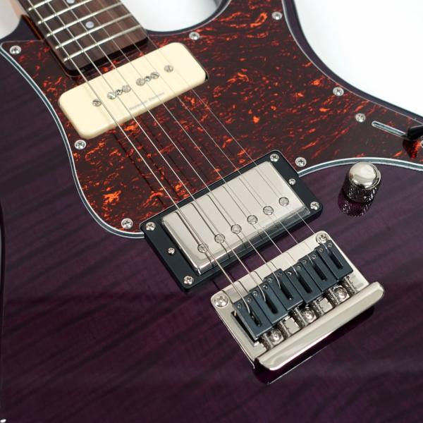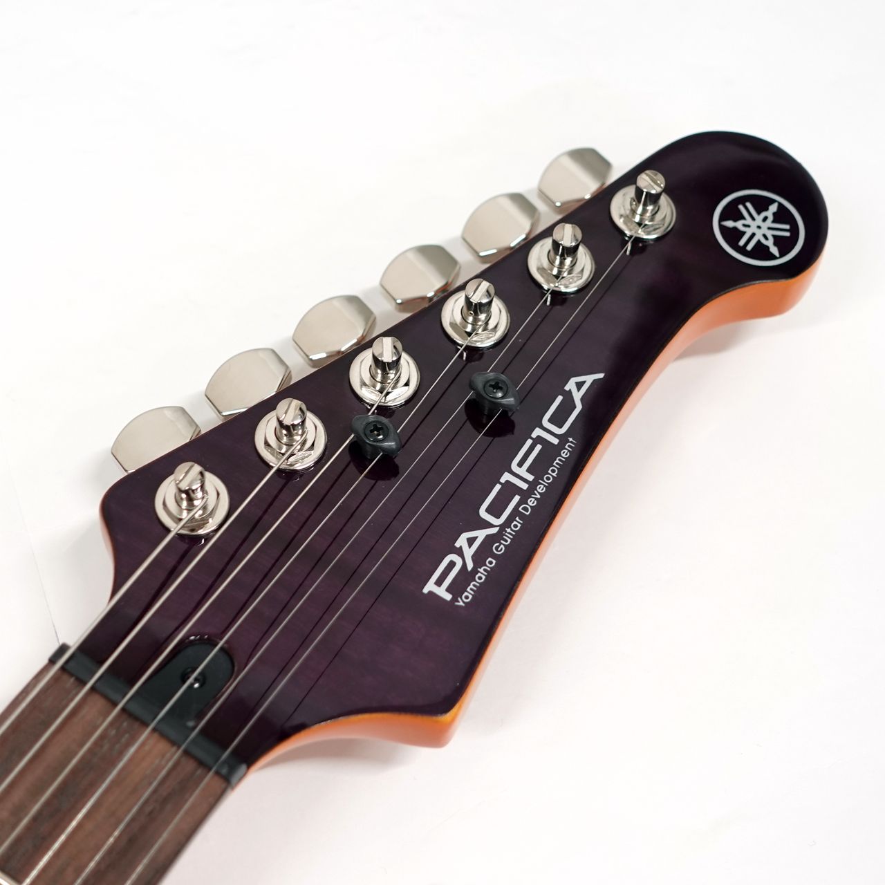 ちょい渋めなシースルーパープルカラー、美しいフレイムメイプル、ヘッドトップにもフレイムメイプルが貼ってあり高級感たっぷり。それでいてどこかビンテージ感を漂わせるヤマハのセンスはさすがです。